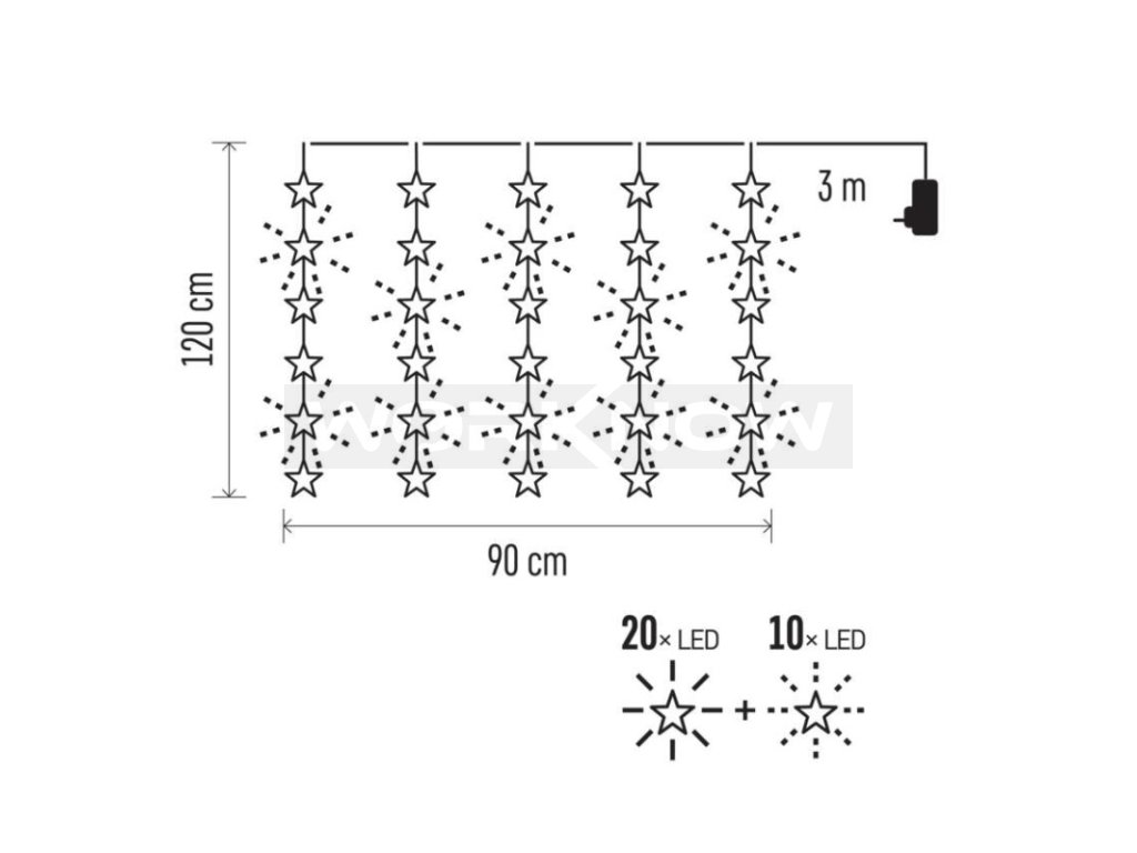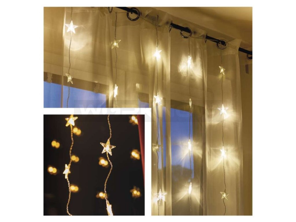 LED vánoční závěs – hvězdy, 120x90 cm, venkovní i vnitřní, teplá bílá, časovač