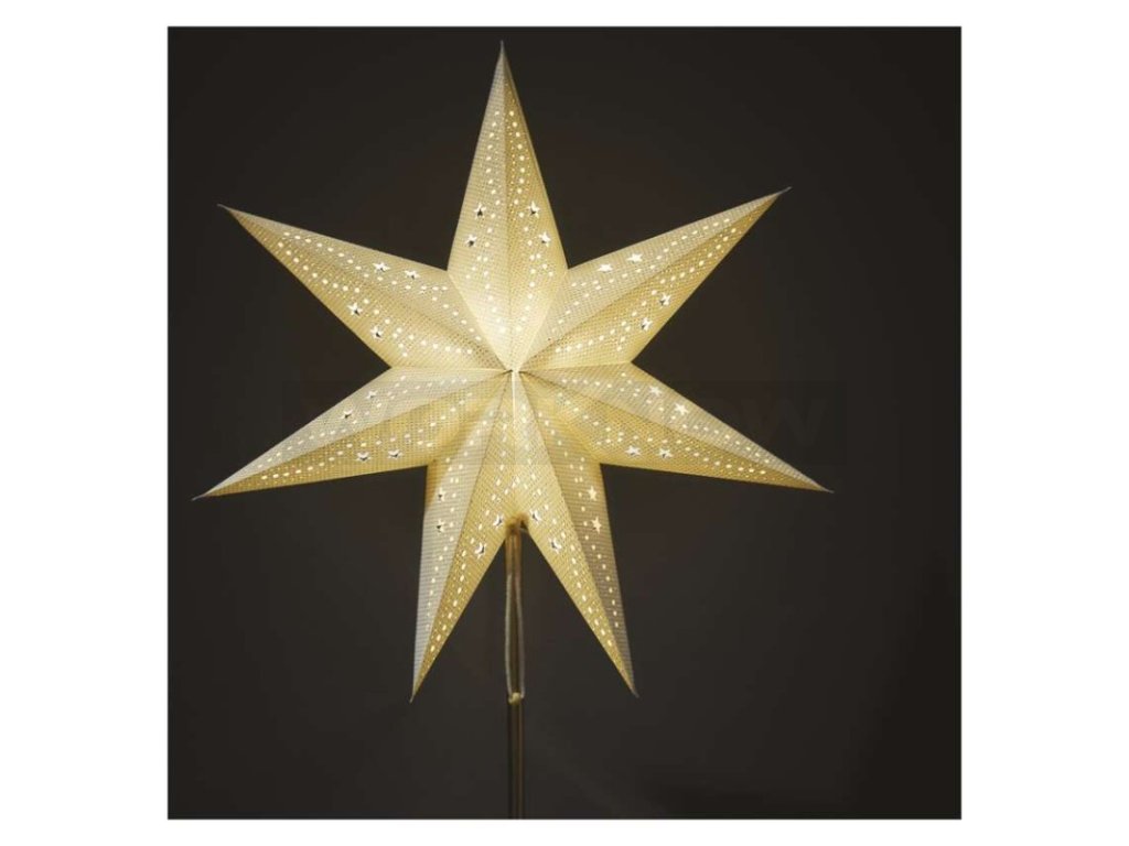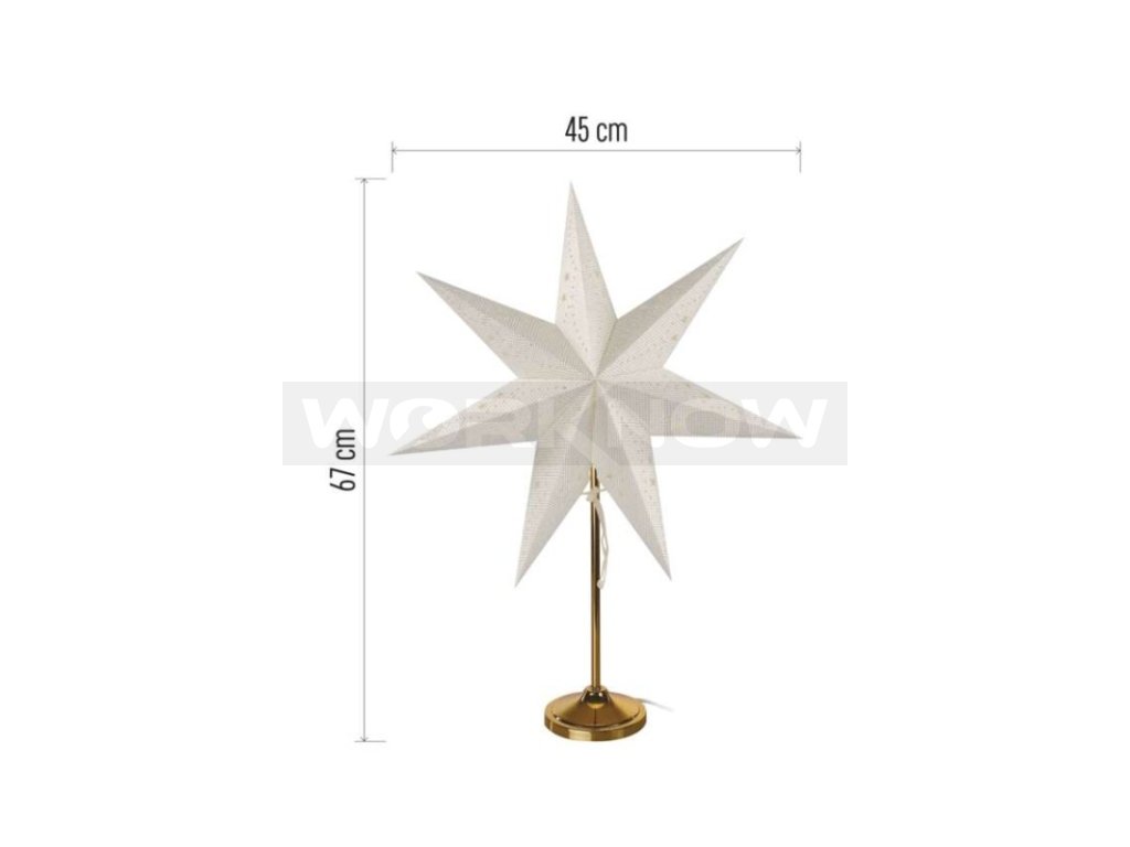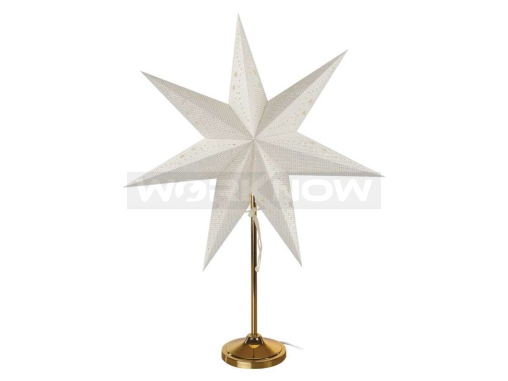 Jak naladit tu správnou vánoční atmosféru a vytvořit útulný domov? Pomůže vám v tom papírová hvězda na stojánku, která se bude skvěle vyjímat v libovolném interiéru na stolku, komodě či parapetu okna. Hvězda má 1,6 metrů dlouhý přívodní kabel a díky patici na žárovku E14 je jen na vás, jakou barvu žárovky využijete. Pokud například zvolíte hvězdu v bílé barvě a dáte do ní žárovku s teplou bílou barvou světla, rozzáří se krásným zlatým světlem, které bude pronikat malými dírami vyraženými ve hvězdě. Výhodou této dekorace je i její skladnost, hvězdu jednoduše složíte pouhým utáhnutím šňůrky.