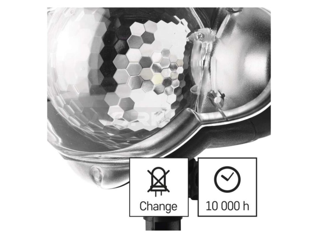 Umístění projektoru na zahradě či v interiéru je díky dlouhému 3 m přívodnímu kabelu dílem okamžiku. Součástí balení je i praktický stojánek pro postavení projektoru na tvrdý podklad. Další možností instalace je využití dodávaného trnu, který lze jednoduše zapíchnout do trávníku nebo květináče.