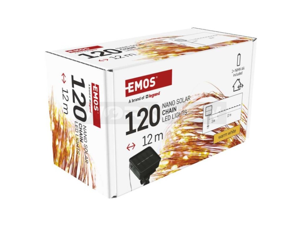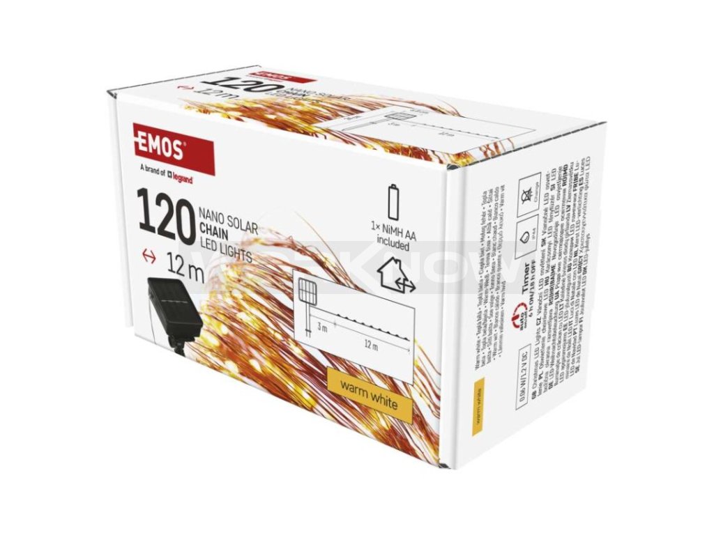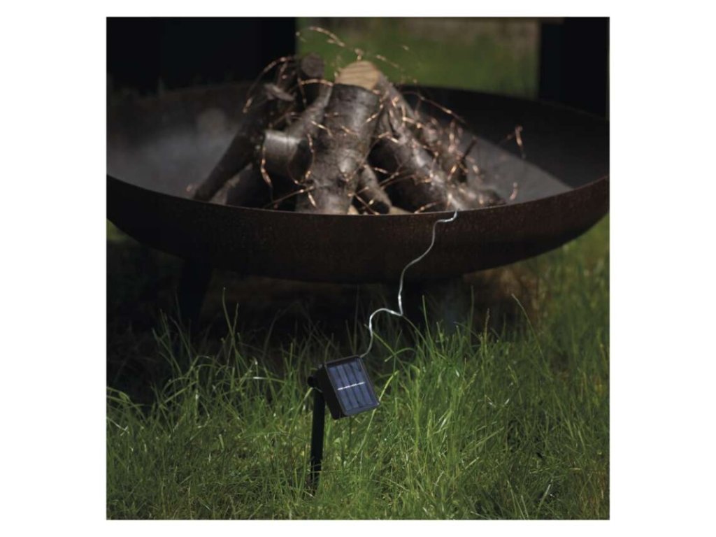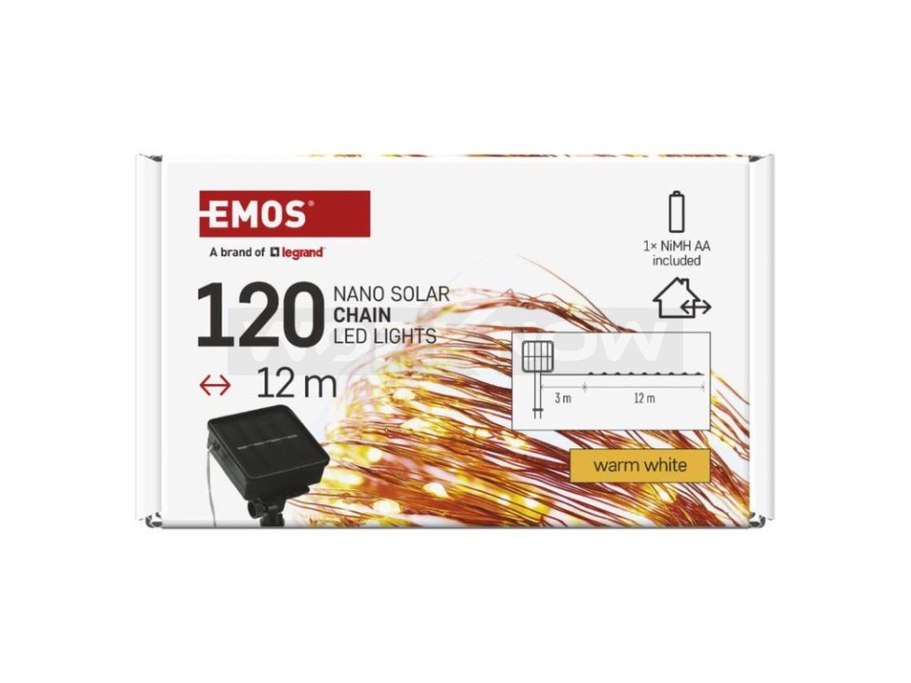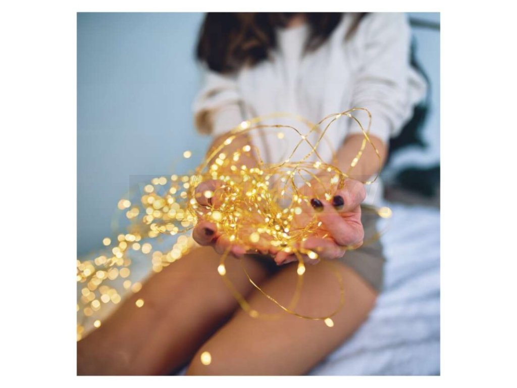 LED nano řetěz se solárním panelem, měděný, 12 m, venkovní i vnitřní, teplá bílá, časovač