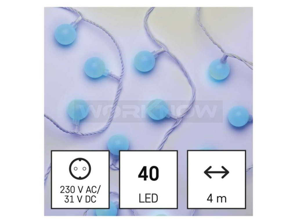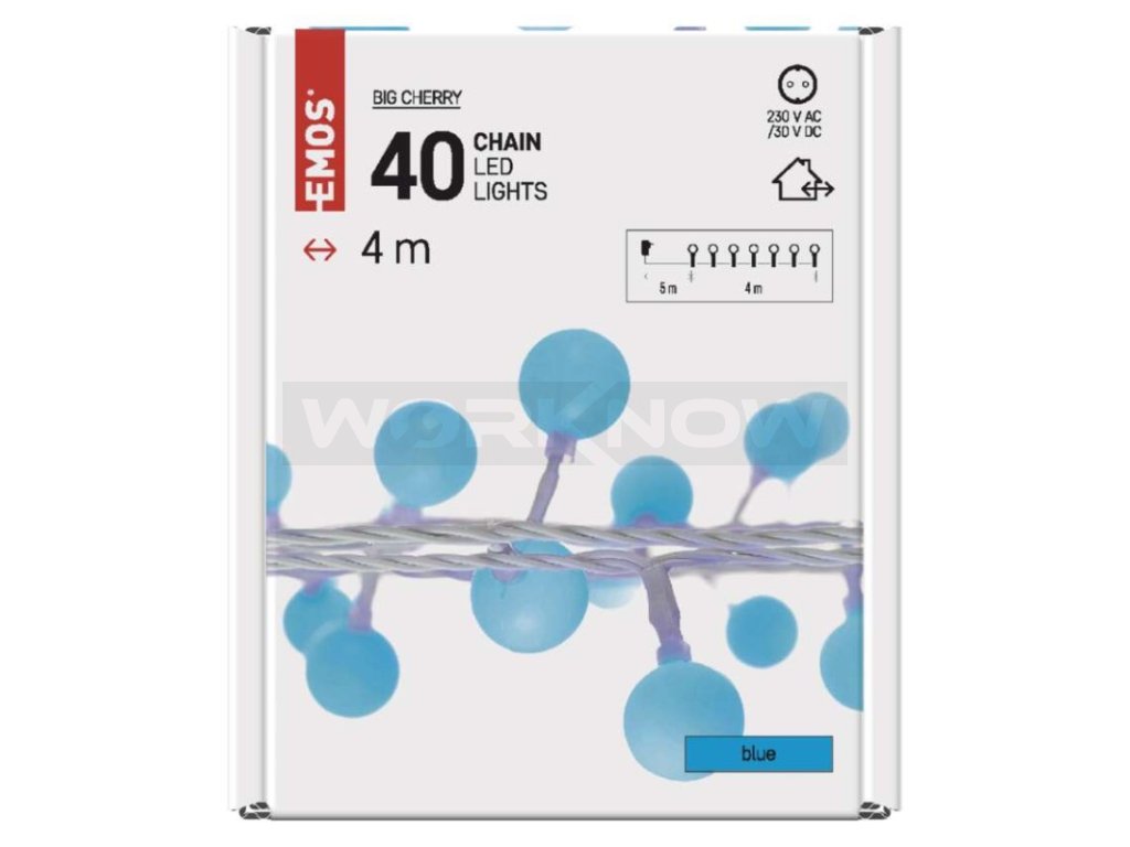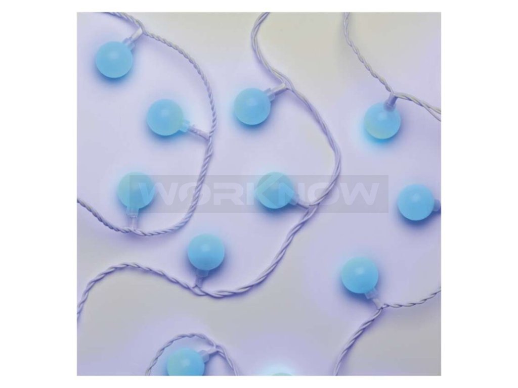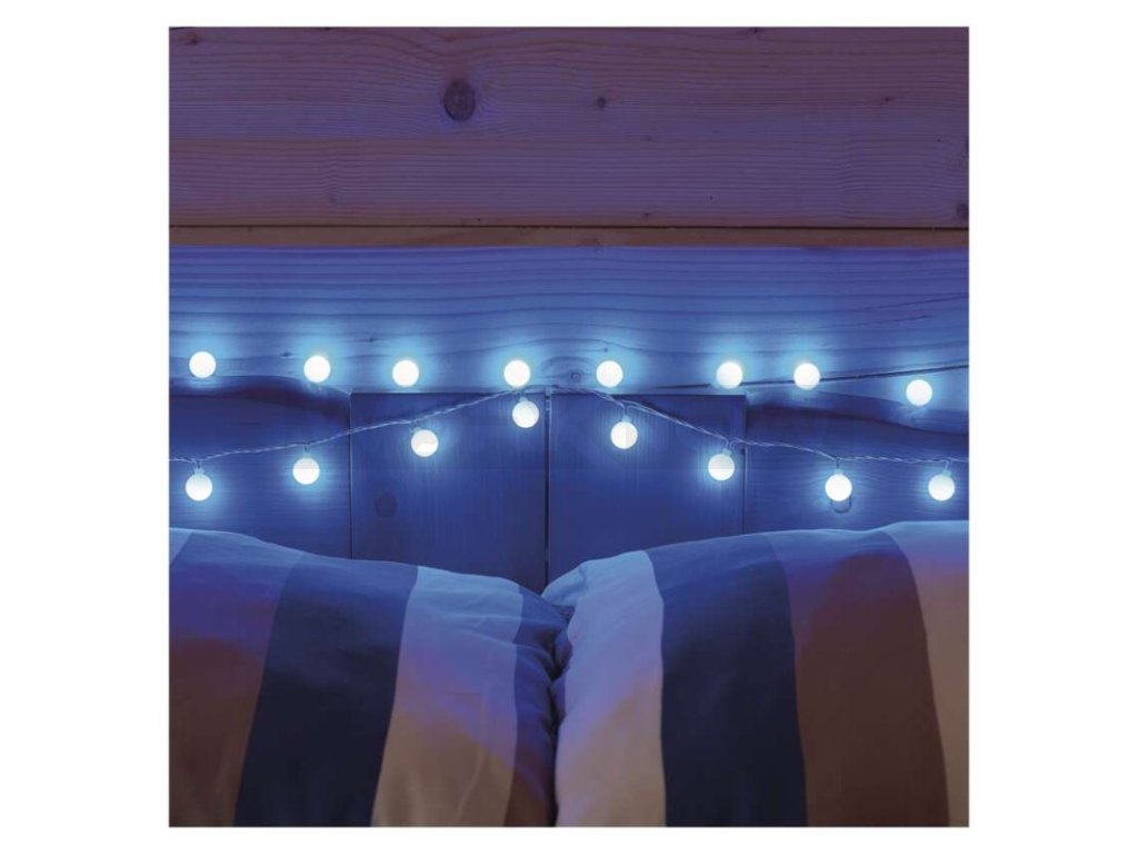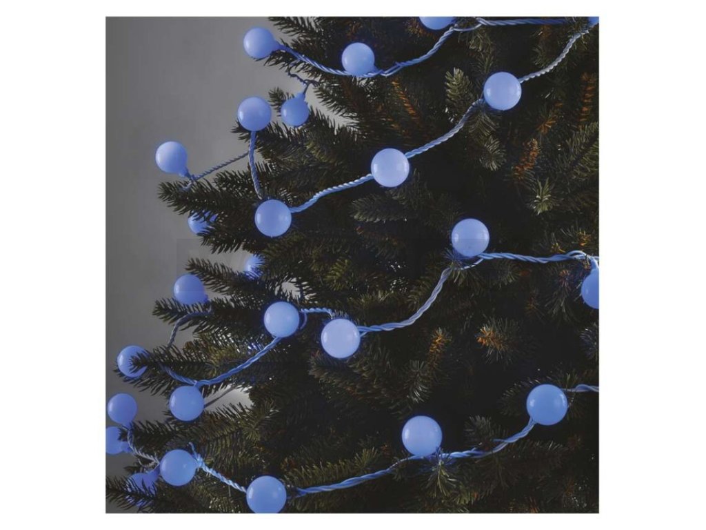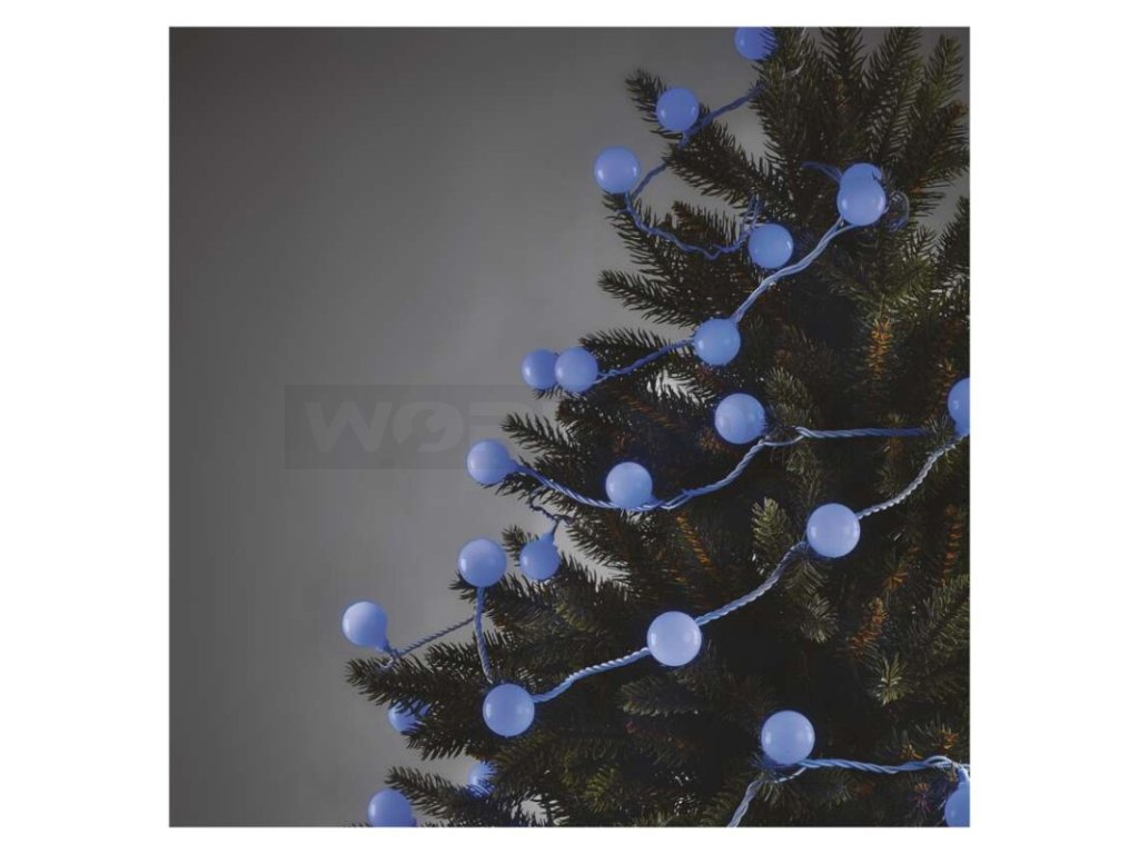 LED světelný cherry řetěz – kuličky 2,5 cm, 4 m, venkovní i vnitřní, modrá, časovač