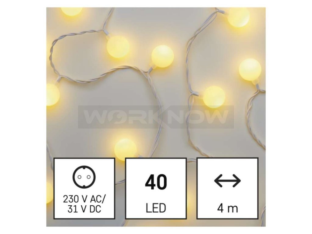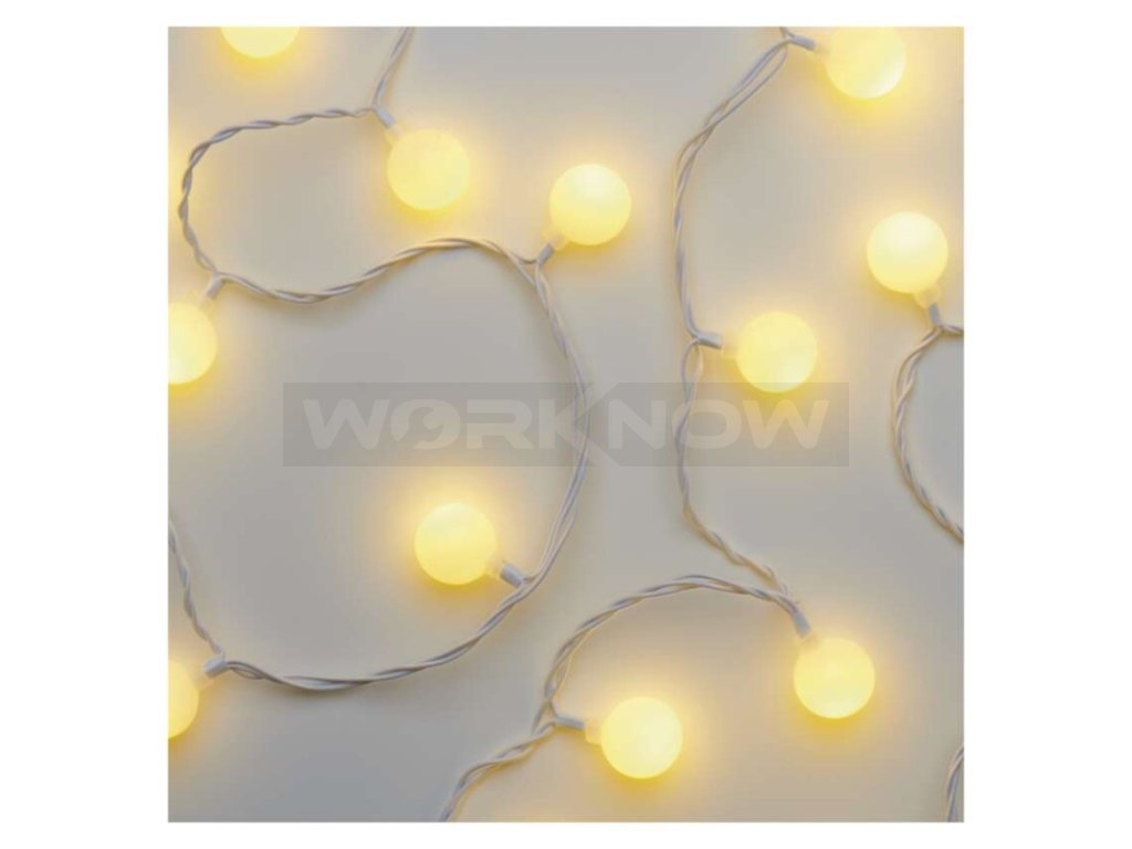 LED světelný cherry řetěz – kuličky 2,5 cm, 4 m, venkovní i vnitřní, teplá bílá, časovač