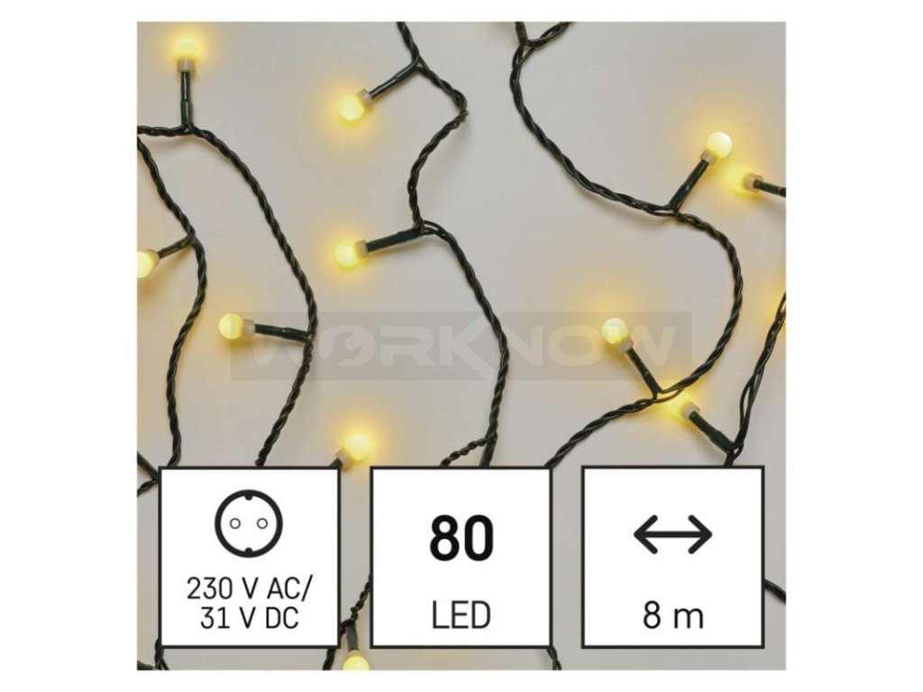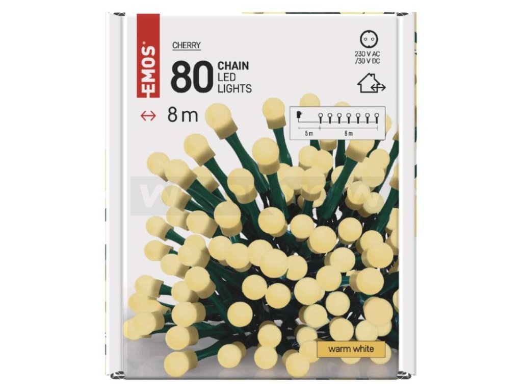 LED vánoční cherry řetěz – kuličky, 8 m, venkovní i vnitřní, teplá bílá, časovač