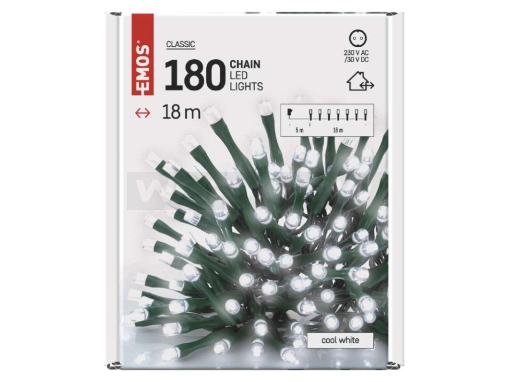 Pro rozsvícení nejen vánočního stromečku nabízíme pod značkou EMOS nepřeberné množství LED řetězů, které vynikají nízkou spotřebou elektrické energie a dlouhou životností. Vybírat můžete z řetězů určených výhradně do interiéru (IP20), exteriéru (IP44) nebo řetězů na baterie, které jsou ideální k dekorování míst bez přístupu k zásuvce. K dispozici jsou čtyři řady LED světelných řetězů, které se liší velikostí LED diody a jejím tvarem – NANO – CLASSIC – CHERRY – TRADITIONAL. Rozhodujícím kritériem při volbě správného řetězu jsou jeho délka, počet LED diod a barva světla.