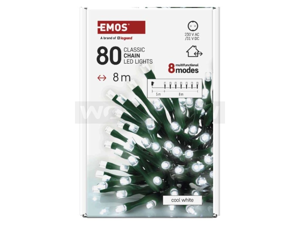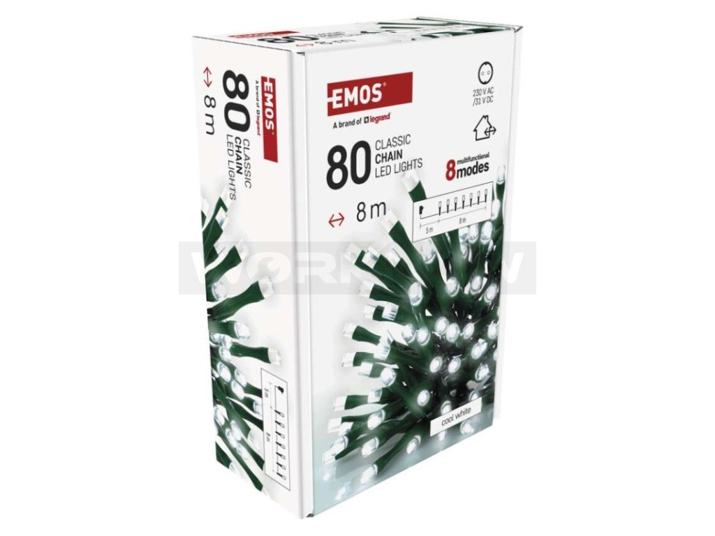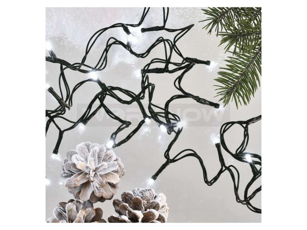 LED vánoční řetěz, 8 m, venkovní i vnitřní, studená bílá, programy, časovač