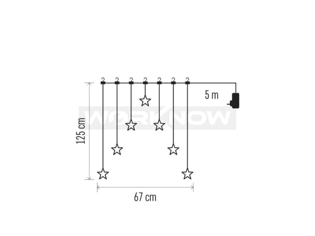 LED vánoční závěs – 7 hvězd, 67x125 cm, vnitřní, teplá bílá