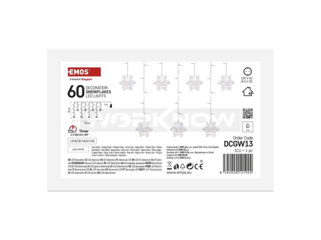 LED vánoční závěs – vločky, 135x50 cm, vnitřní, studená bílá