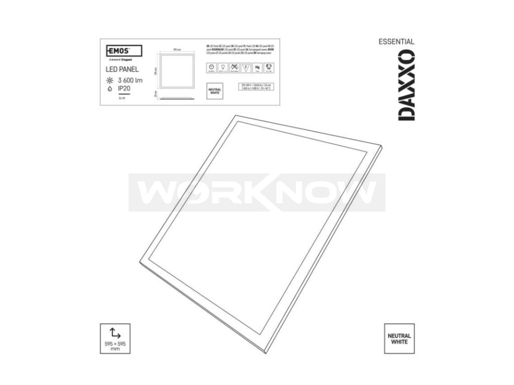 LED panel DAXXO backlit 60×60, čtvercový vestavný bílý, 36W neutr. b.