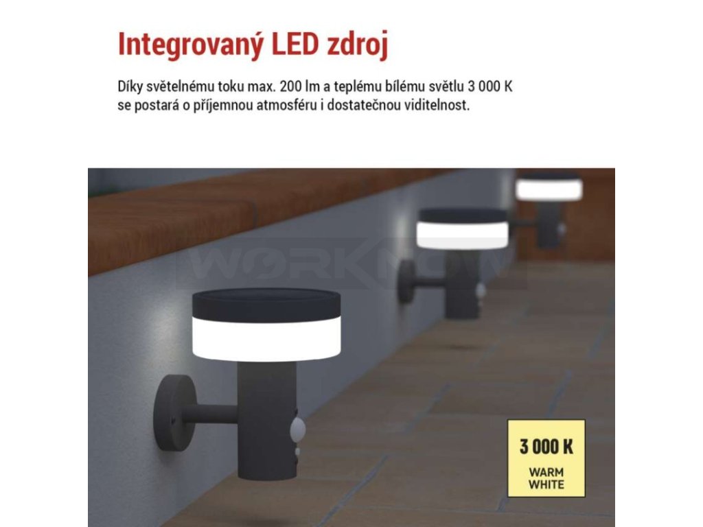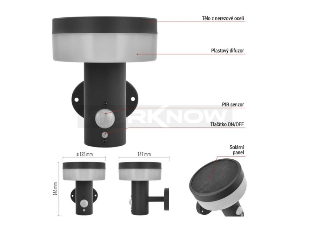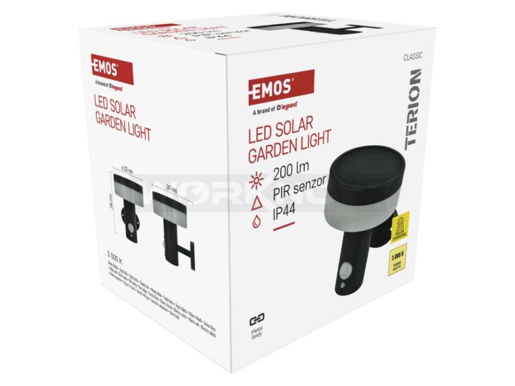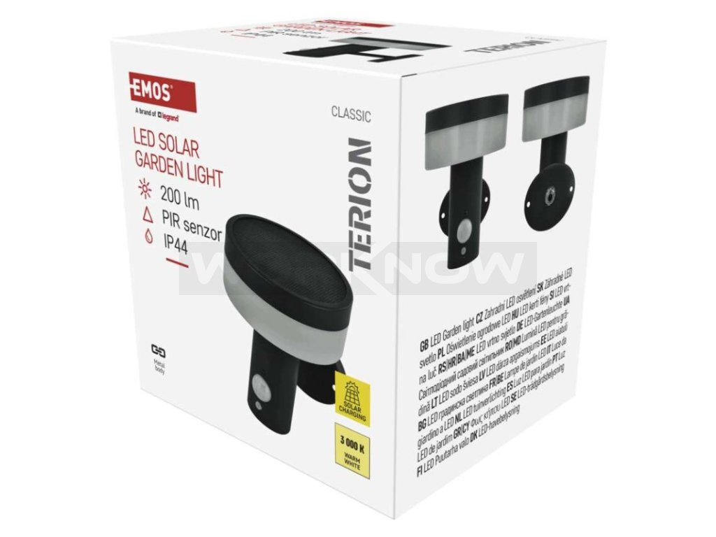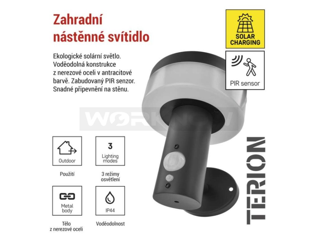 LED zahradní solární nástěnné svítidlo TERION, čidlo soumraku, 12,5 x 14,7 x 14,2 cm