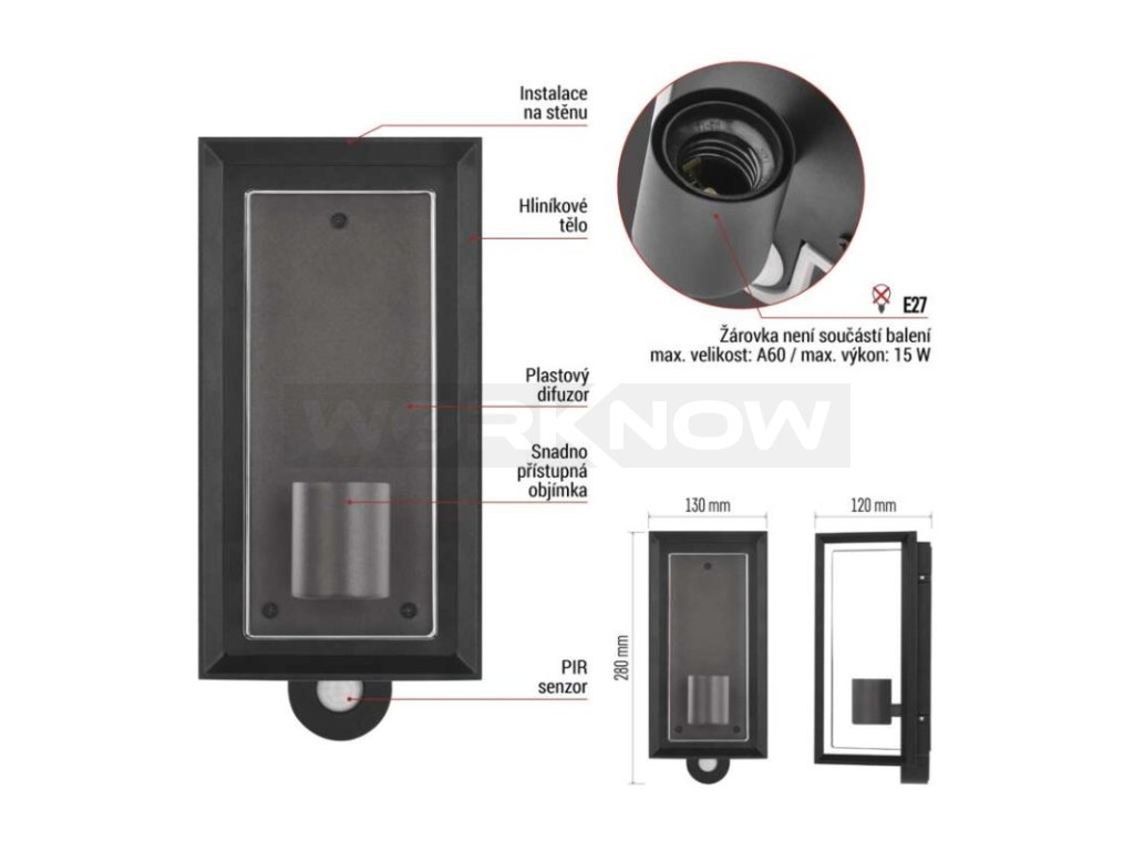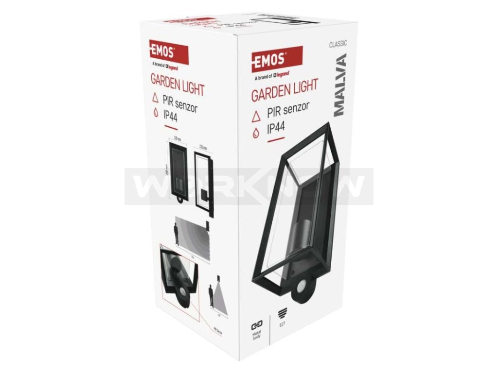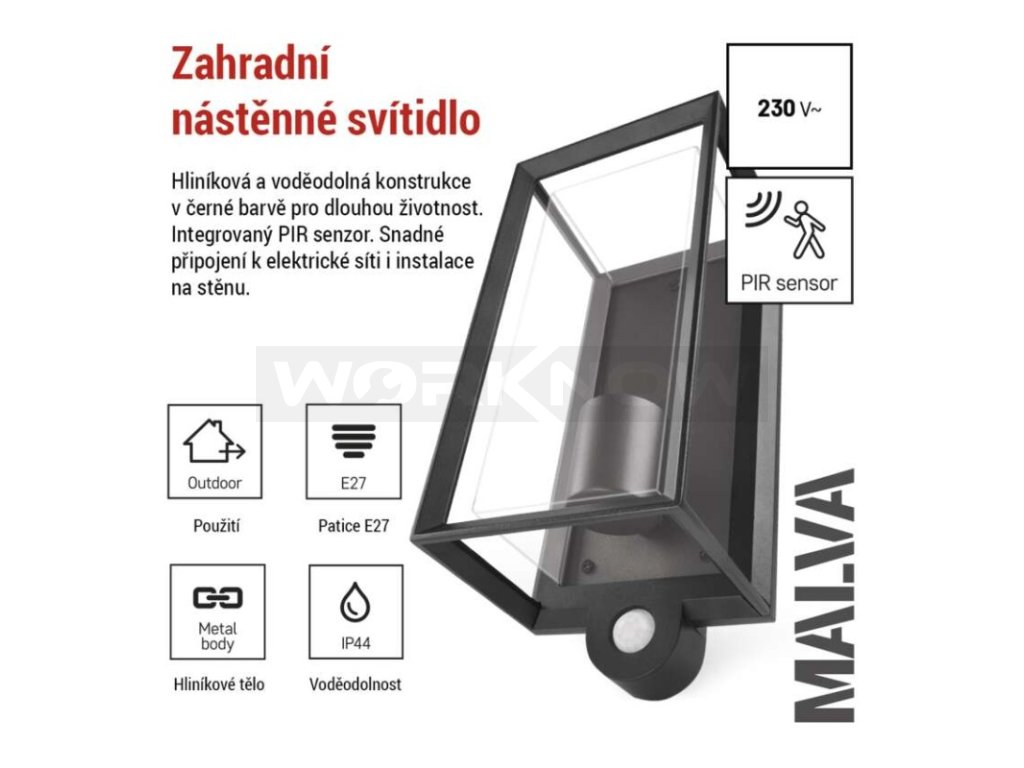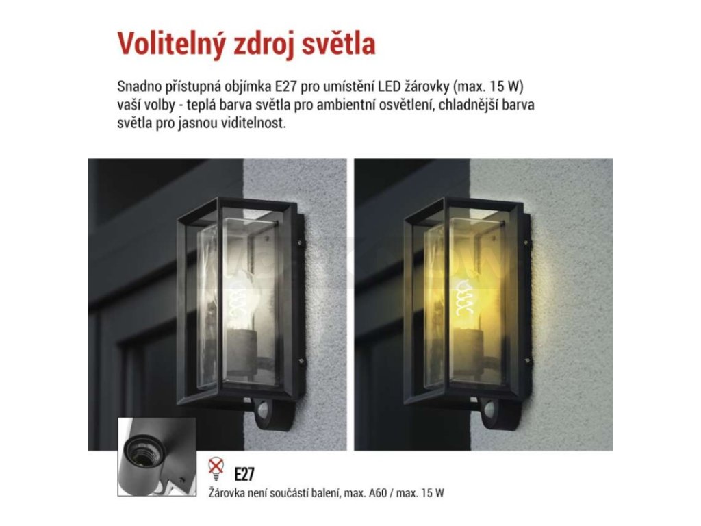 Zahradní nástěnné svítidlo MALVA, čidlo soumraku, 13 x 12 x 28 cm, 1 x E27, 15 W