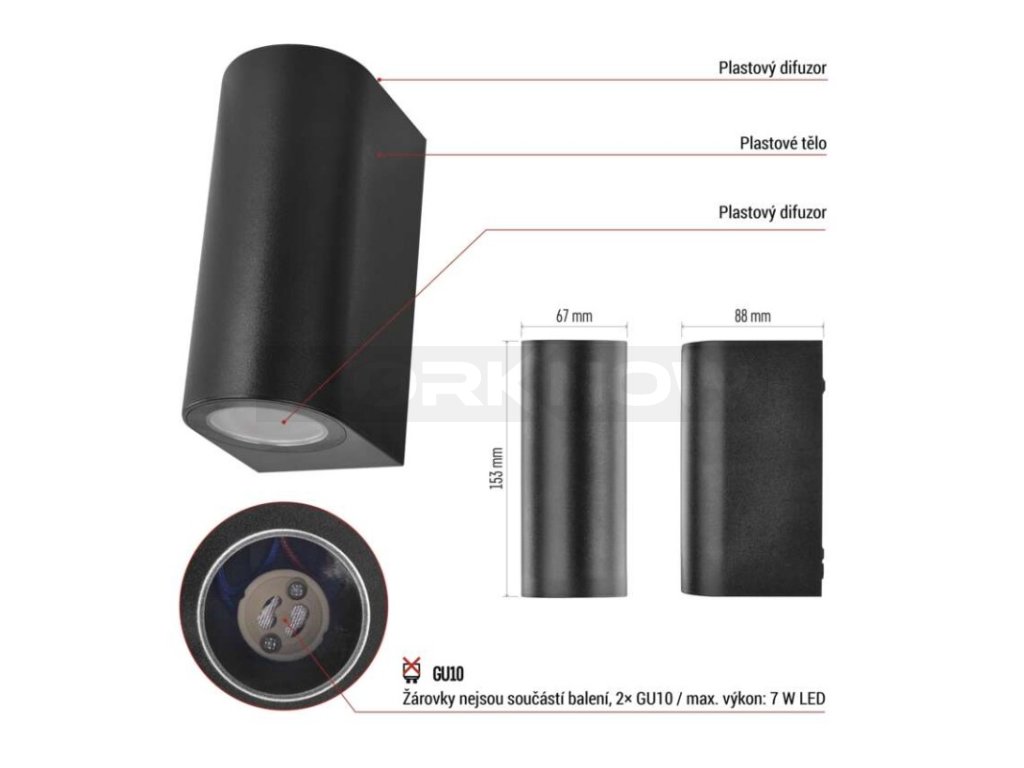 Zahradní nástěnné svítidlo OCULUS, 8,8 x 6,7 x 15,3 cm, 2 x GU10, 35 W
