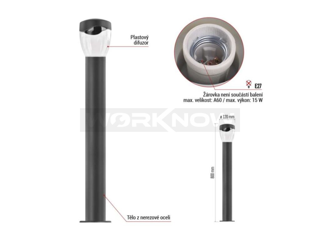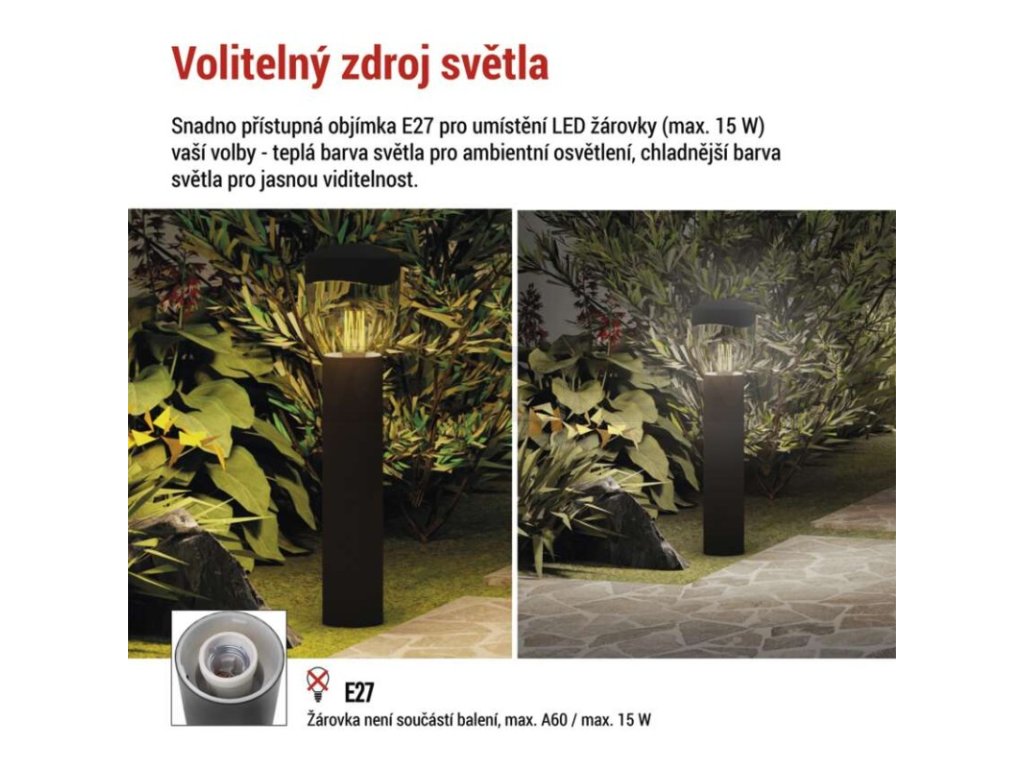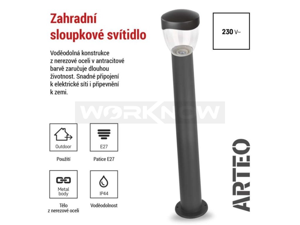 Zahradní sloupkové svítidlo ARTEO, 12 x 12 x 80 cm, 1 x E27, 15 W