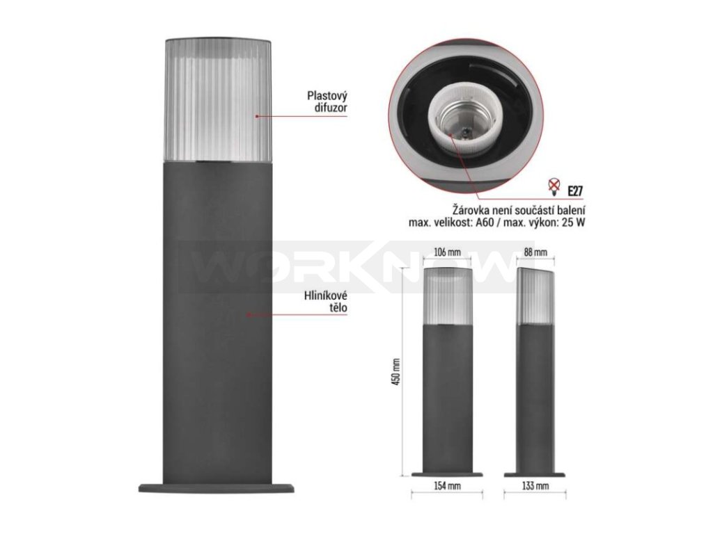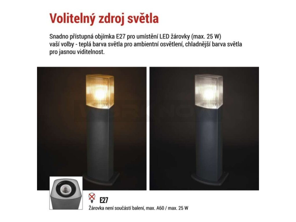 Zahradní sloupkové svítidlo LANA, 15,3 x 13,3 x 45 cm, 1 x E27, 25 W