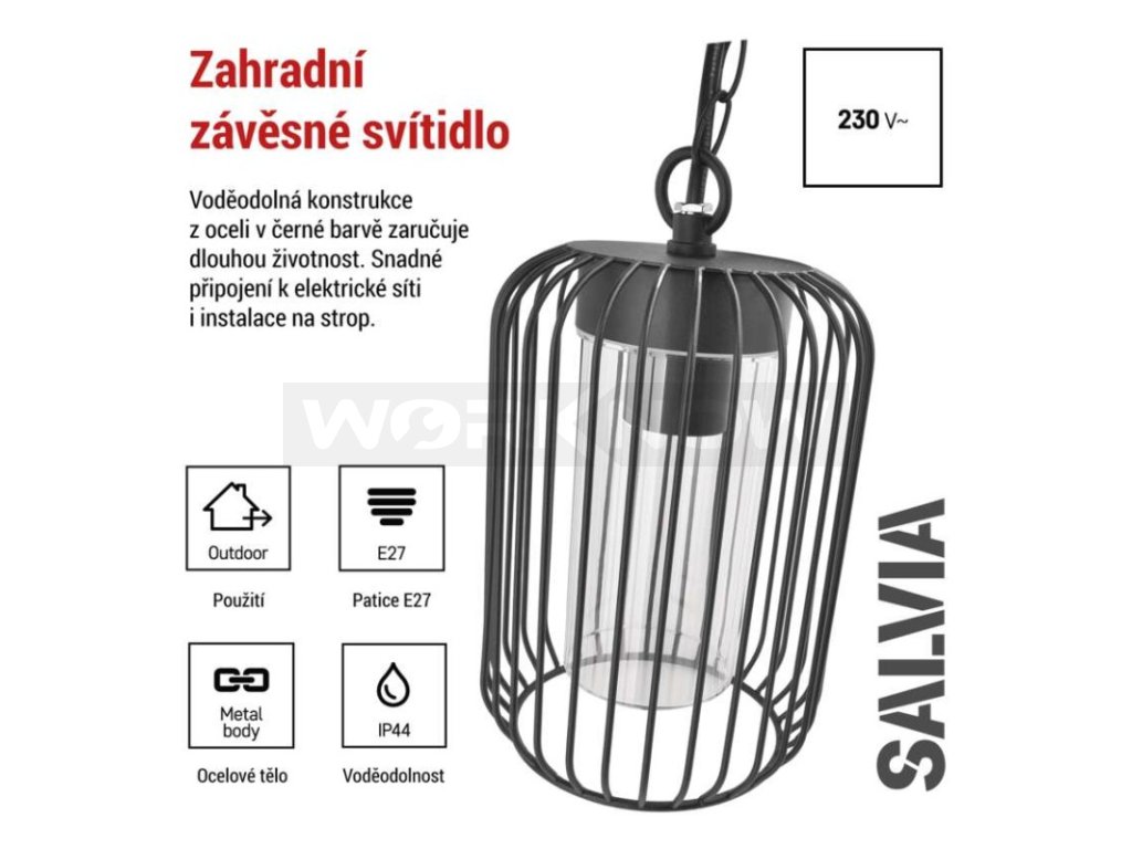 Zahradní závěsné svítidlo SALVIA, 16 x 16 x 32 cm, 1 x E27, 15 W