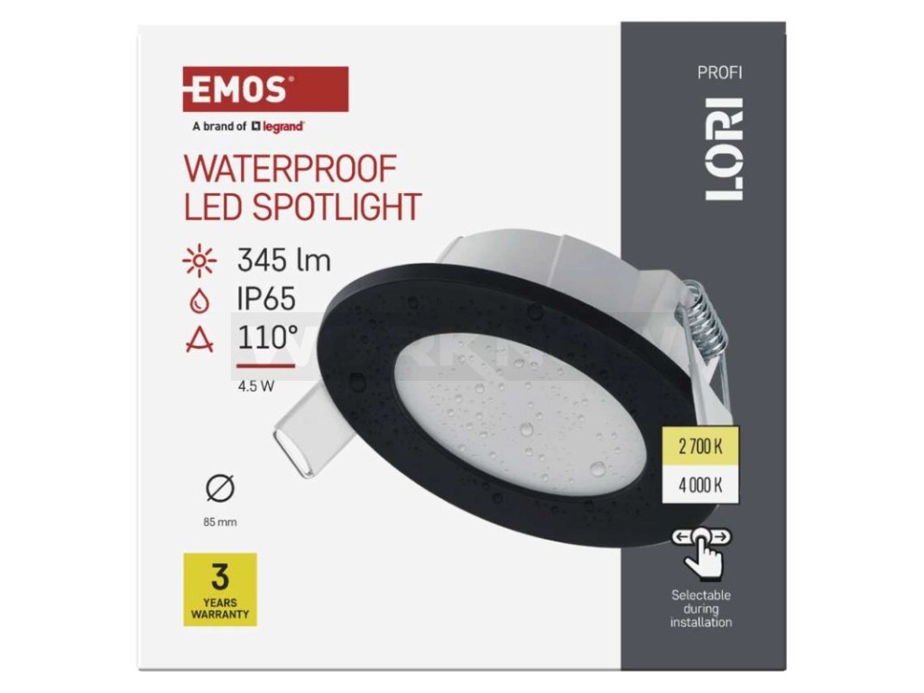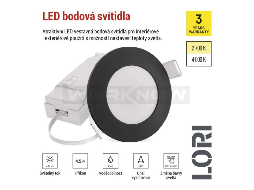 LED bodové svítidlo LORI 4,5W 345LM IP65 CCT černá