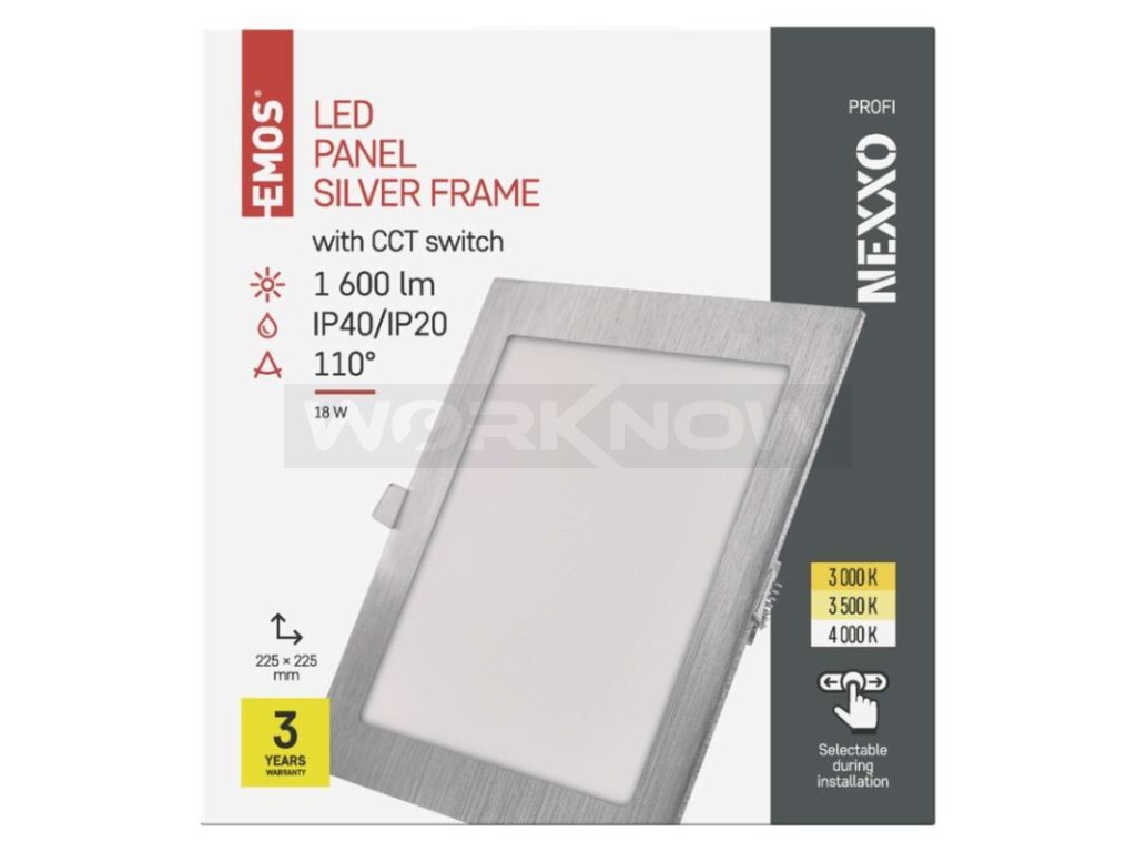LED vestavné svítidlo NEXXO, čtvercové, stříbrné, 18W, se změnou CCT