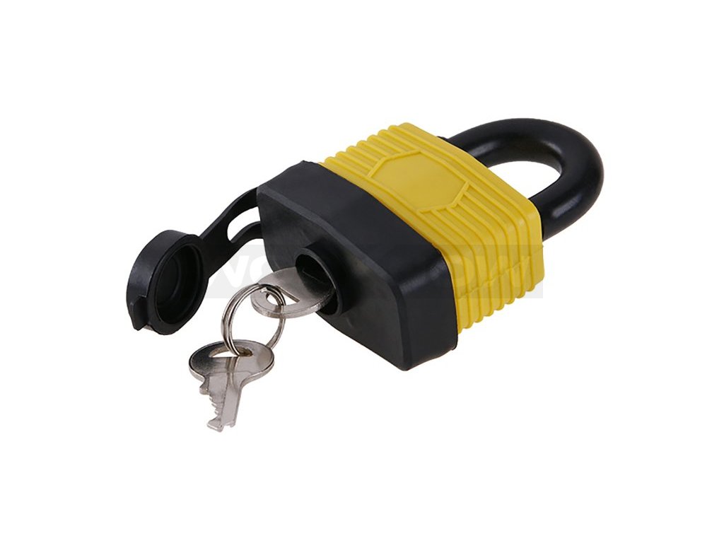 60mm ocelové tělo potaženo plastem pro maximální odolnost proti vodě a vlhkosti. Oblouk tvrzené oceli potažený plastem pro lepší odolnosti proti prořezání Váha: 430g 2 ocelové klíče.