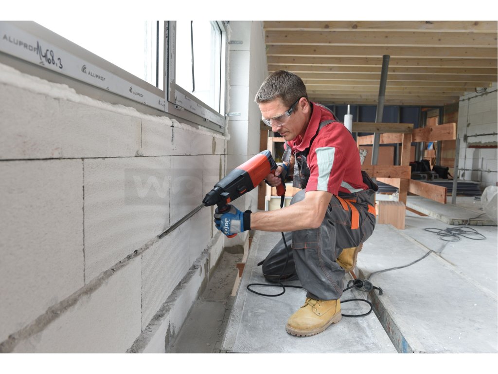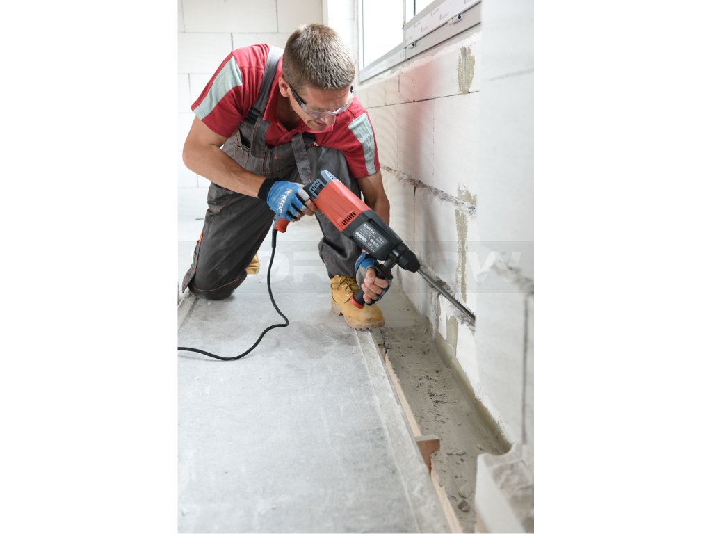 Praktické vrtací kladivo určené na vrtání do zdiva a betonu, sekání do pórobetonu a zdiva a osekávání omítek či obkladů. Jako jedno z mála kladiv je vybaveno také zpětným chodem.- kladivo je vybaveno zámkem sekáče, který udržuje sekáč při sekání ve stejné poloze