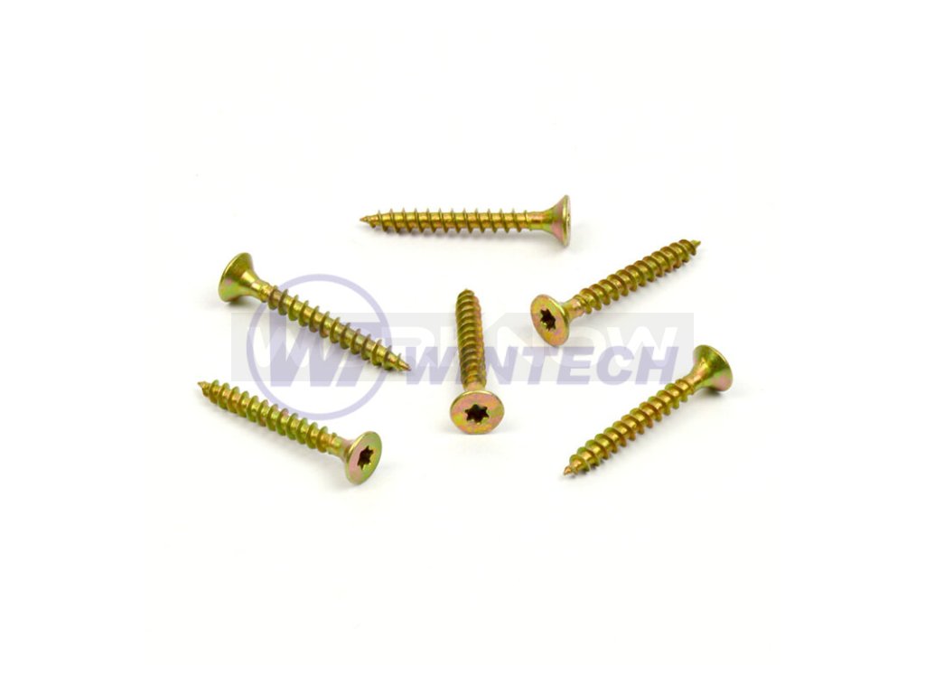 Vruty do dřeva se závitem k hlavě, drážka Torx, zinek žlutý