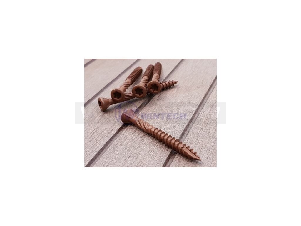 Tento terasový vrut je vyrobený z uhlíkové oceli použitelný ve venkovním prostředí. Povrch vrutu je ošetřen speciální nátěrovou hmotou, která zaručuje vyšší odolnost proti korozi. Má výraznou, zápustnou a lehce čočkovitou hlavu s drážkováním ze spodní strany. Vrut má oblíbený pohon TORX. Dřík vrutu má částečný závit s frézičkou a řezným břitem pro rychlé zavrtání s minimální námahou. Hodí se zejména pro zhotovování teras, fasád, lávek, altánů a dalších dřevostaveb