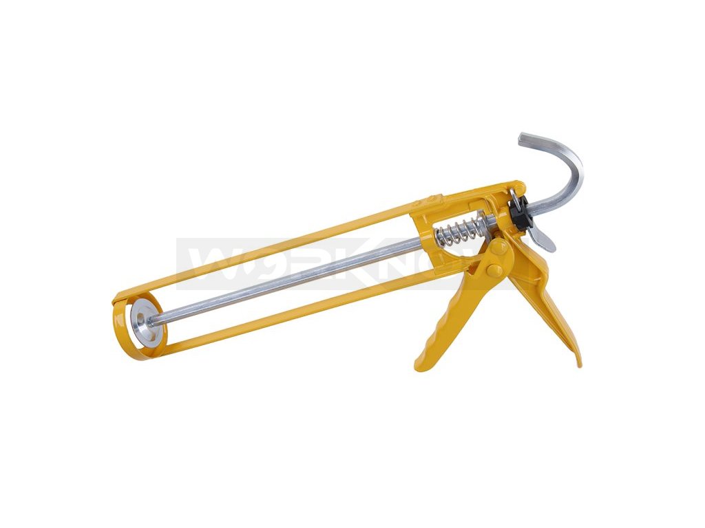 Vytlačovací pistole, kvalitní kovová konstrukce i zpracování, speciální posuvný mechanismus, který po uvolnění spouště - vytlačování, vrátí táhlo o cca 5 mm zpět, čímž dochází k okamžitému přerušení tlaku pístu na tmel zpětný odskok, tyč táhla aplikačního pístu má šestihranný profil pro zvýšené tření, použití : pro vytláčení tmelů a lepidel v kartuších 310 ml.Doplňkové parametry