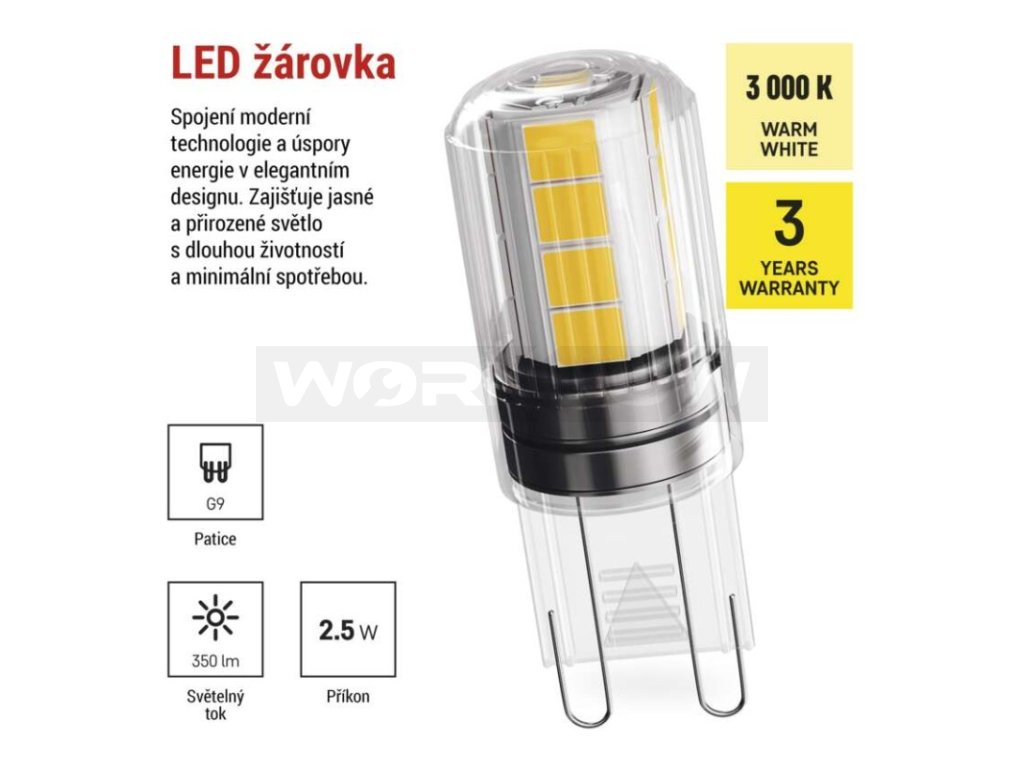 | Patice (uchycení žárovky): | G9 |