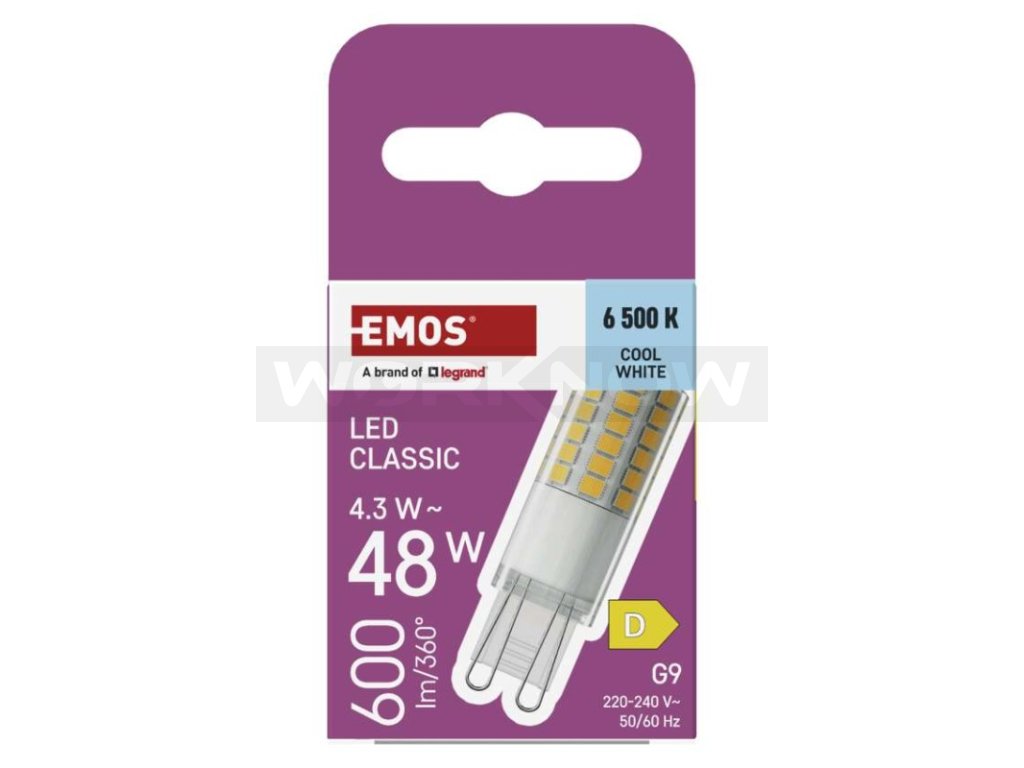 LED žárovka Classic JC / G9 / 4,3 W (48 W) / 600 lm / Studená bílá