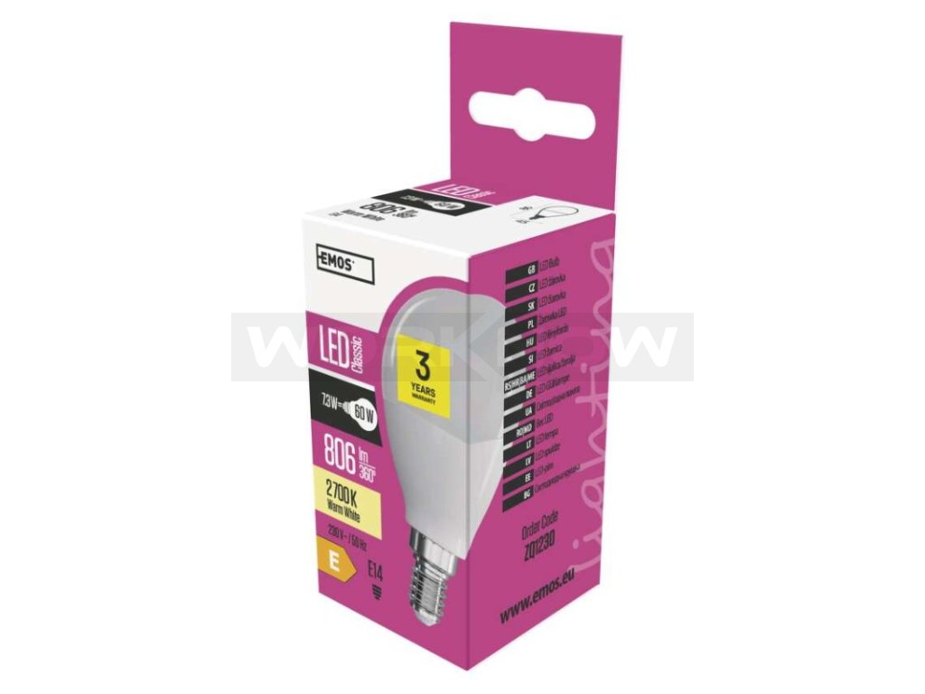 EMOS žárovku ZQ1230 našroubujete díky patici E14 téměř do všech lampiček ve vaší domácnosti. Kromě vysokého světelného toku (806 lm) vás potěší i svou nízkou spotřebou (jen 8 W) a výjimečně dlouhou životností 30 000 hodin.