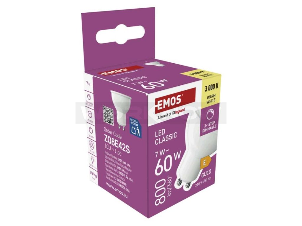 LED žárovka Classic MR16 / GU10 / 7 W (60 W) / 800 lm / teplá bílá / krokově stmívatelná