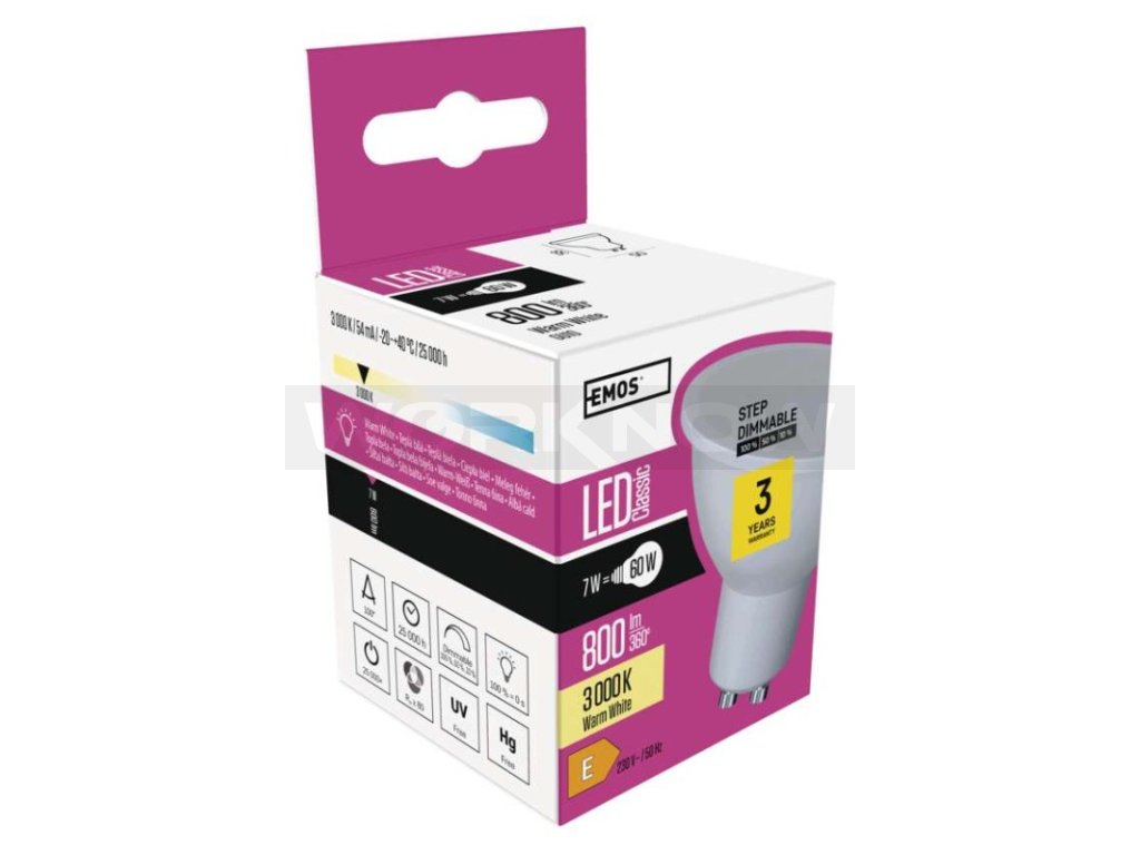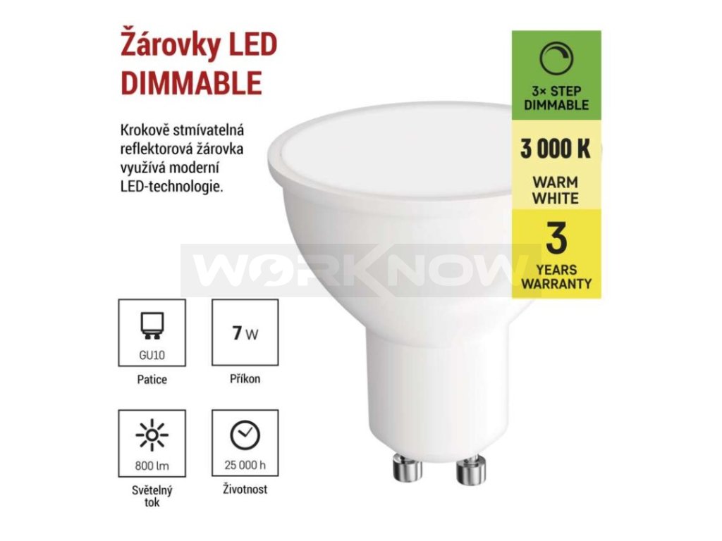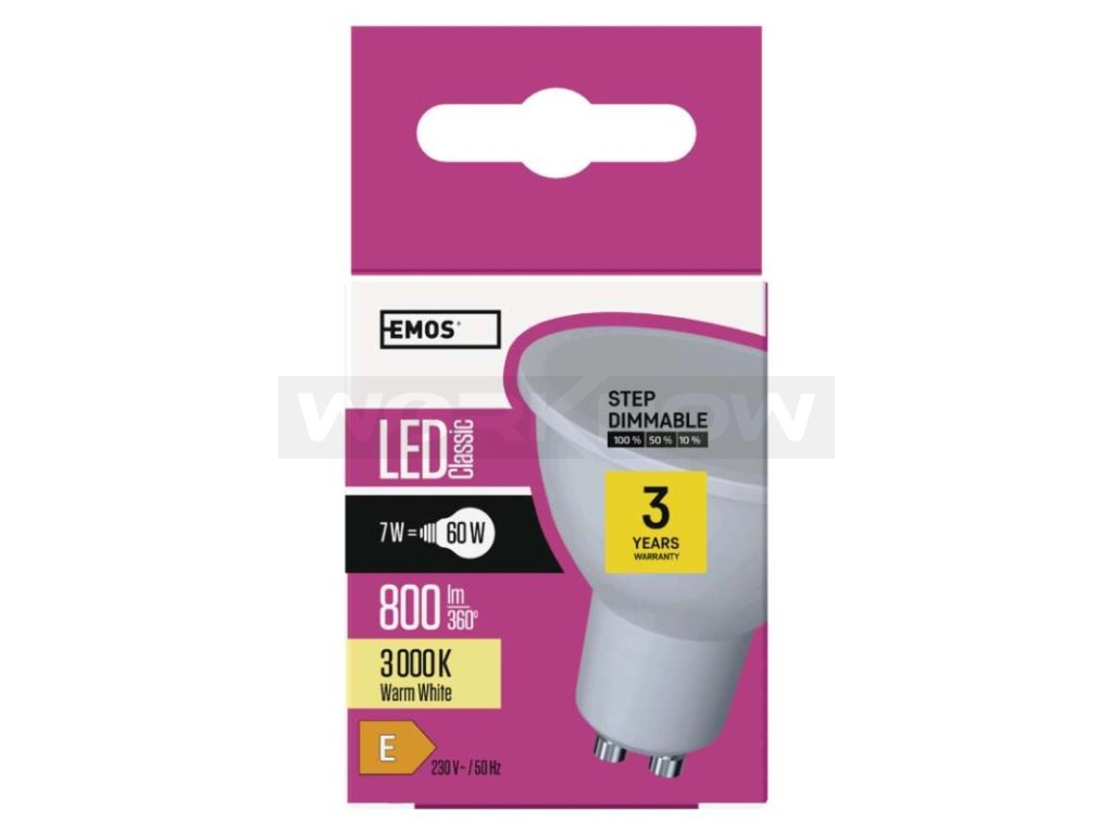 LED žárovka Classic MR16 / GU10 / 7 W (60 W) / 800 lm / teplá bílá / stmívatelná / krokově
