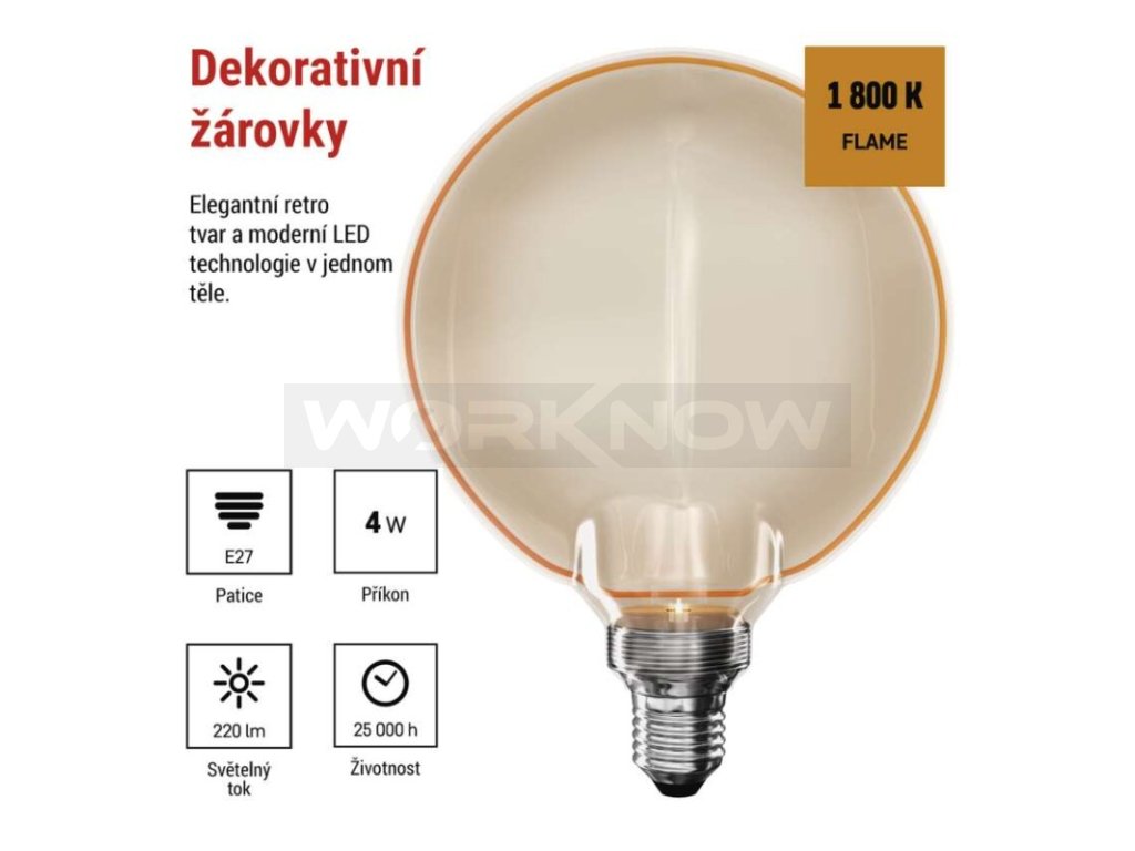LED žárovka DECO G130OA / E27 / 4 W (22 W) / 220 lm / flame