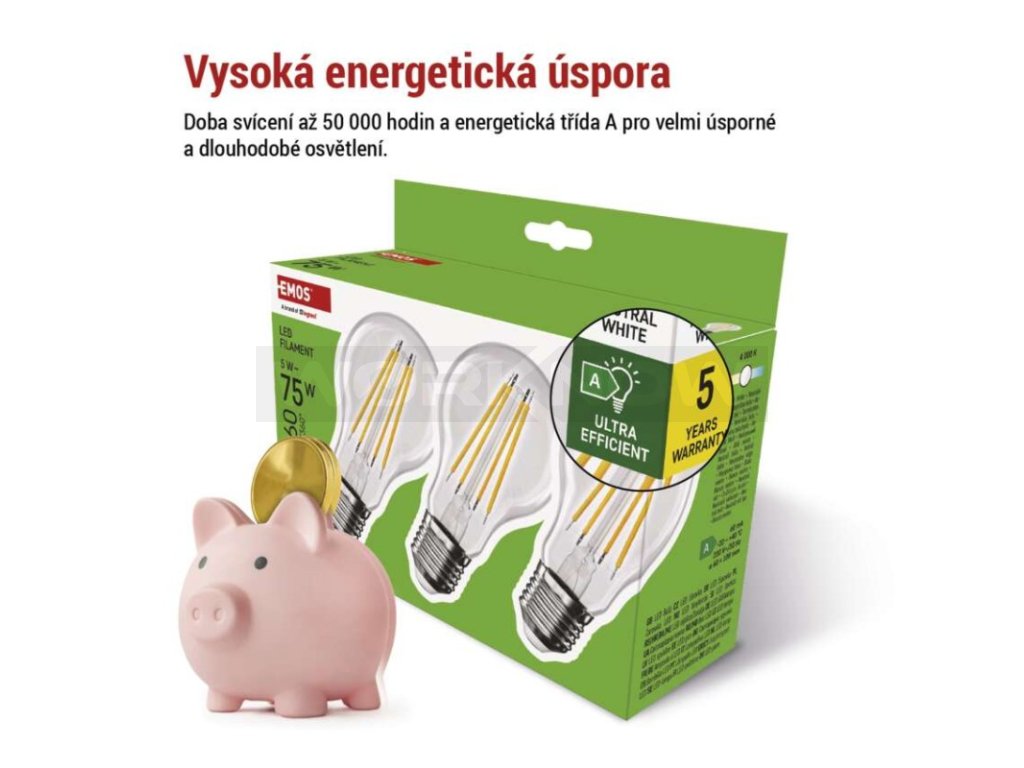 Ultra Efficient – energetická třída A; Úspora energie/peněz; Záruka 5 let; Životnost 50 000 h