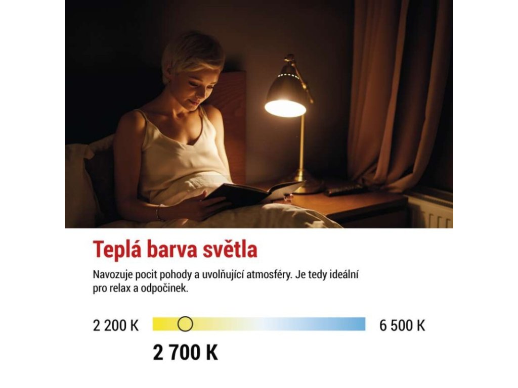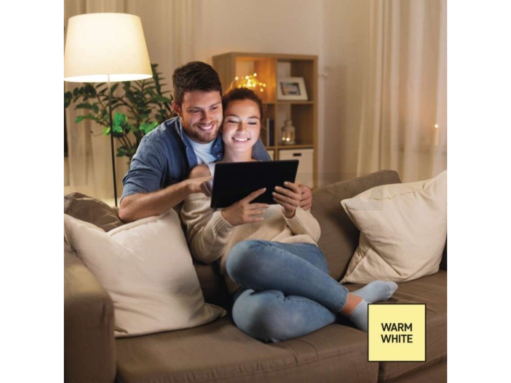 - Teplé bílé světlo je ideální pro večerní relax a odpočinek v obýváku nebo ložnici