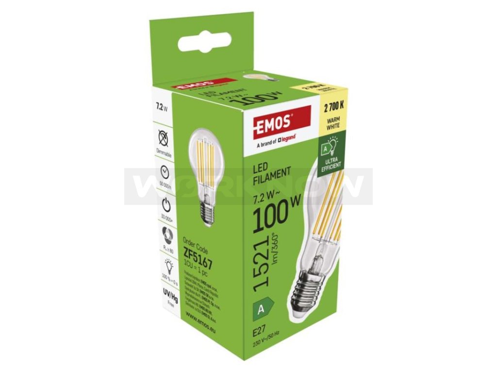 LED žárovka Filament A60 A CLASS / E27 / 7,2 W (100 W) / 1521 lm / teplá bílá