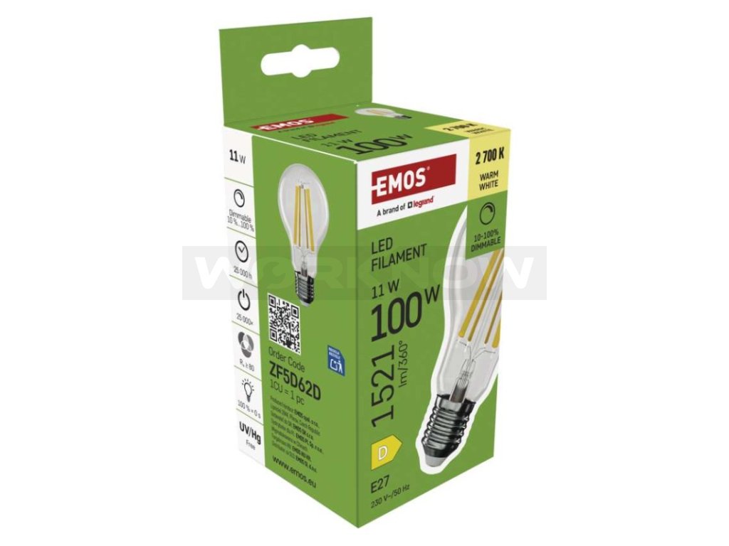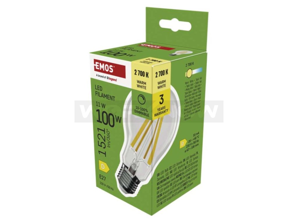 LED žárovka Filament A60 / E27 / 11 W (100 W) / 1 521 lm / teplá bílá / stmívatelná
