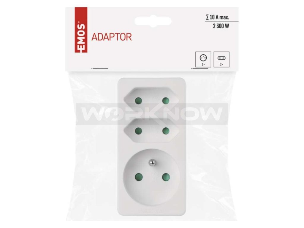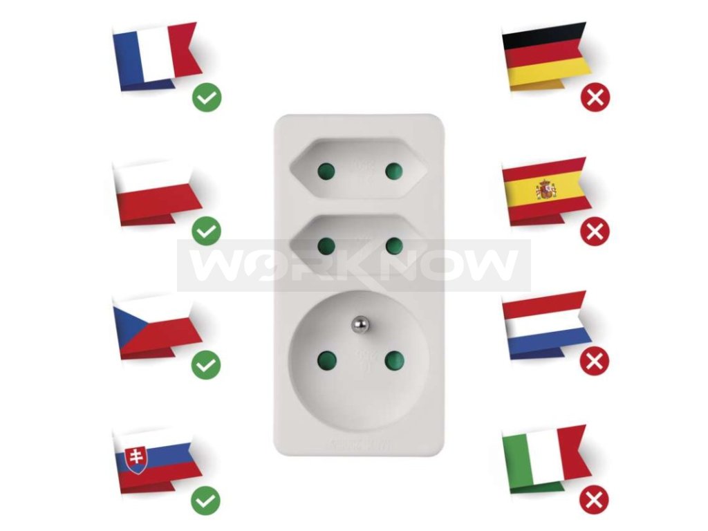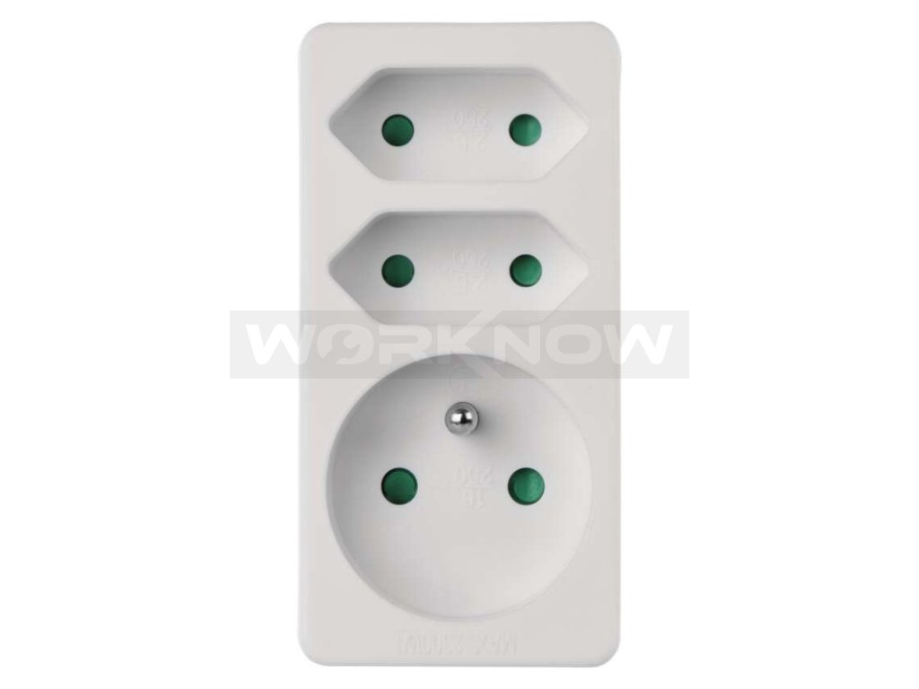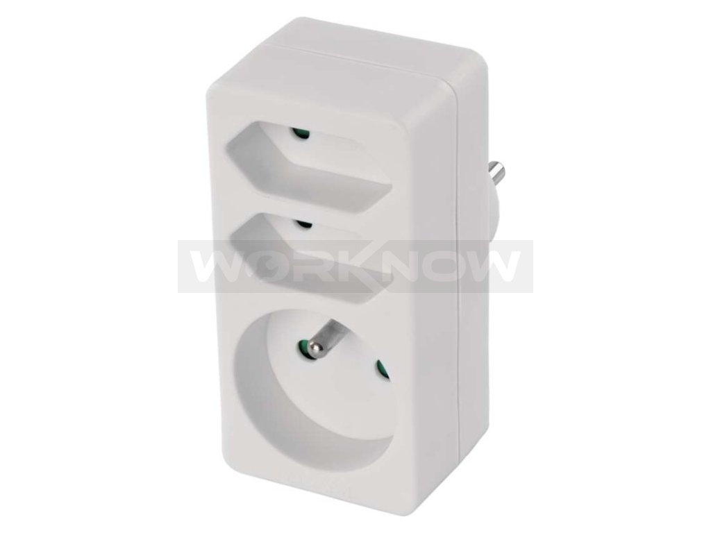 Rozbočovací zásuvka 2× plochá + 1× kulatá, bílá