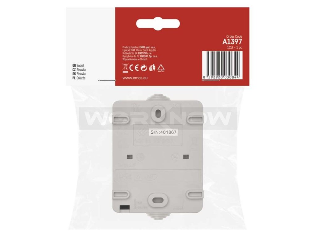 | Produkt: | zásuvka jednonásobná s ochranným kolíkem a víčkem |