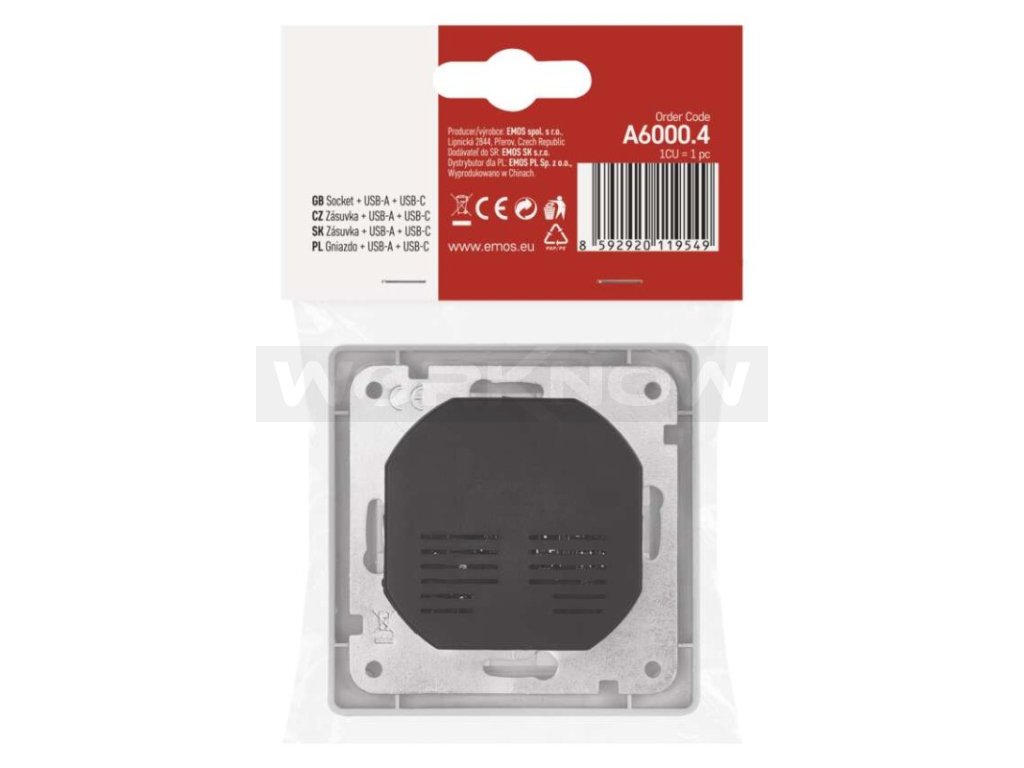 | Produkt: | zásuvka jednonásobná s ochranným kolíkem a USB výstupem 3 A max. |