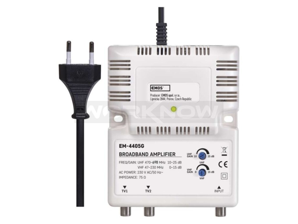 Zesilovač pracuje v pásmech 47–230 MHz a 470–698 MHz. Díky oddělenému nastavení zesílení pro VHF a UHF vstupy mohou být vyrovnány úrovně signálů.