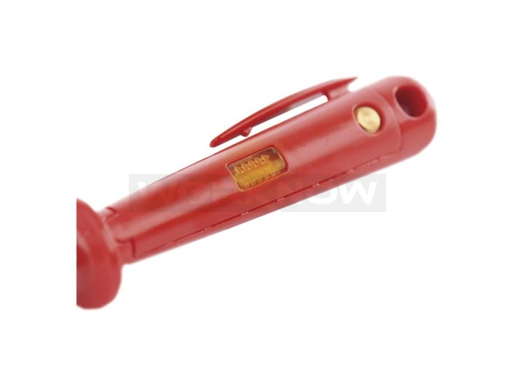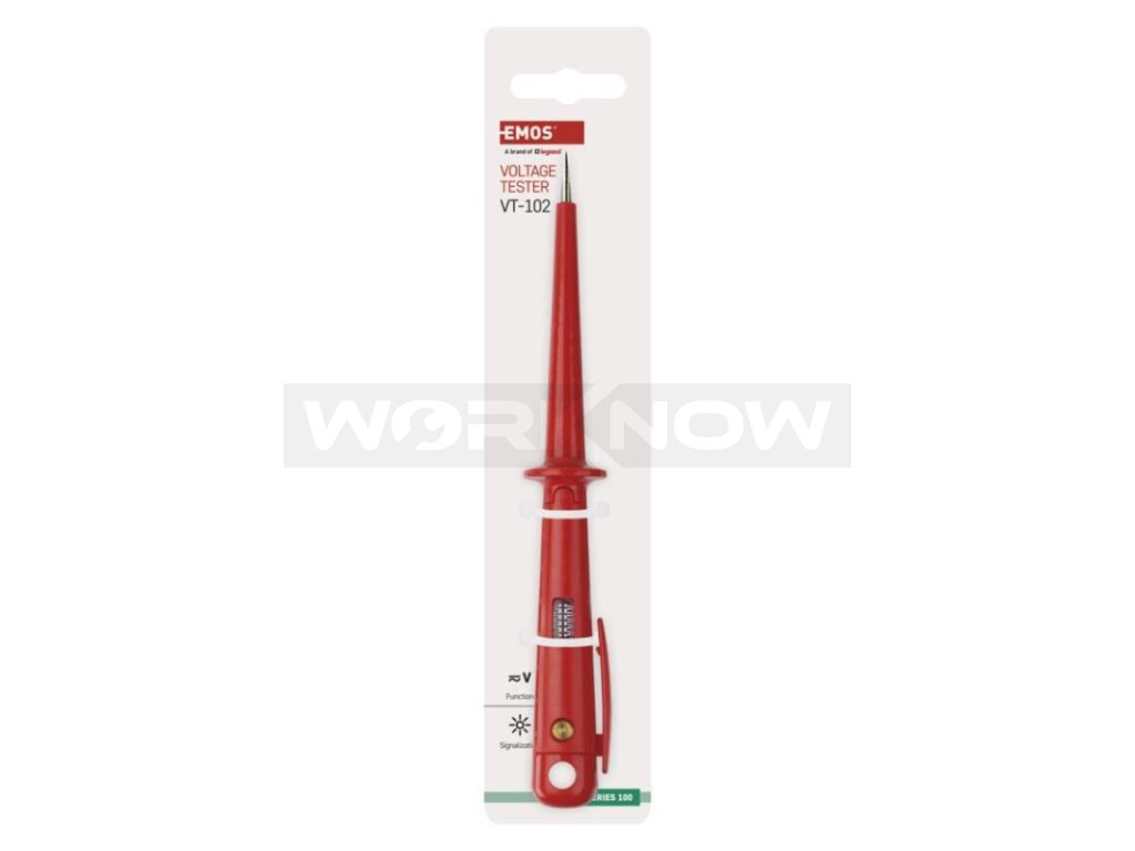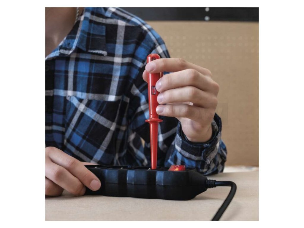 Zkoušečka napětí s optickou signalizací. Zkoušečka je určena ke zjišťování střídavého napětí 200–250 V a stejnosměrného napětí 0–250 V.