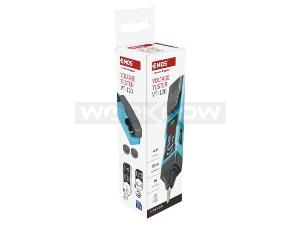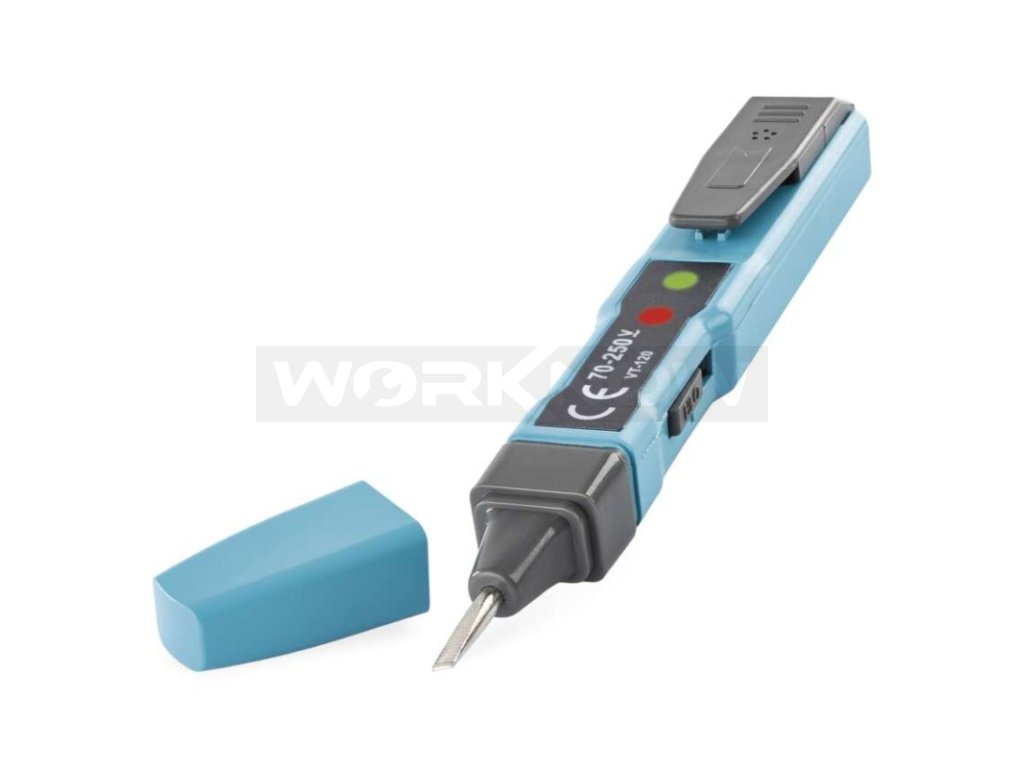Zkoušečka napětí s optickou signalizací. Zkoušečka je určena ke zjišťování střídavého napětí 70–250 V a stejnosměrného napětí 0–250 V. Zkoušečka zjišťuje také polaritu zdrojů nebo zkrat. Zkoušečka napětí je napájena 2× LR44 (součást balení).